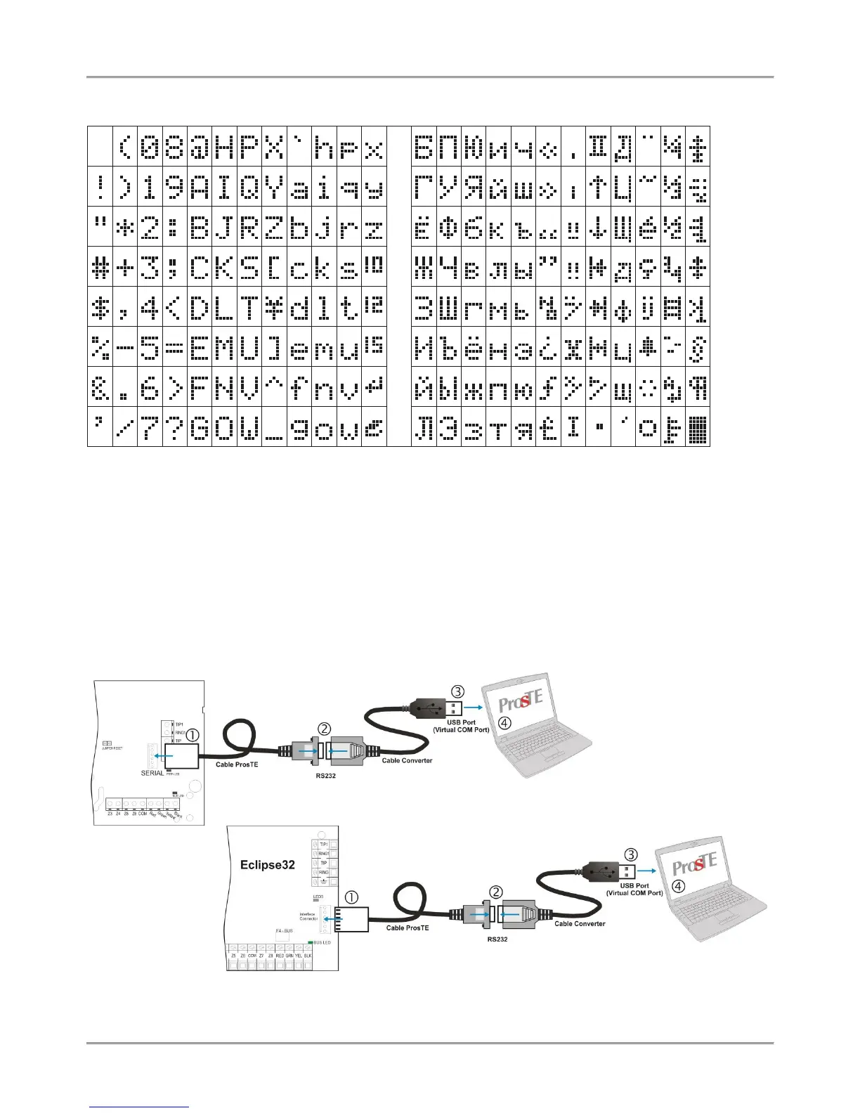 The programming of ECLIPSE Series control panels is via serial connection using specialized “cable ProsTE”. It is