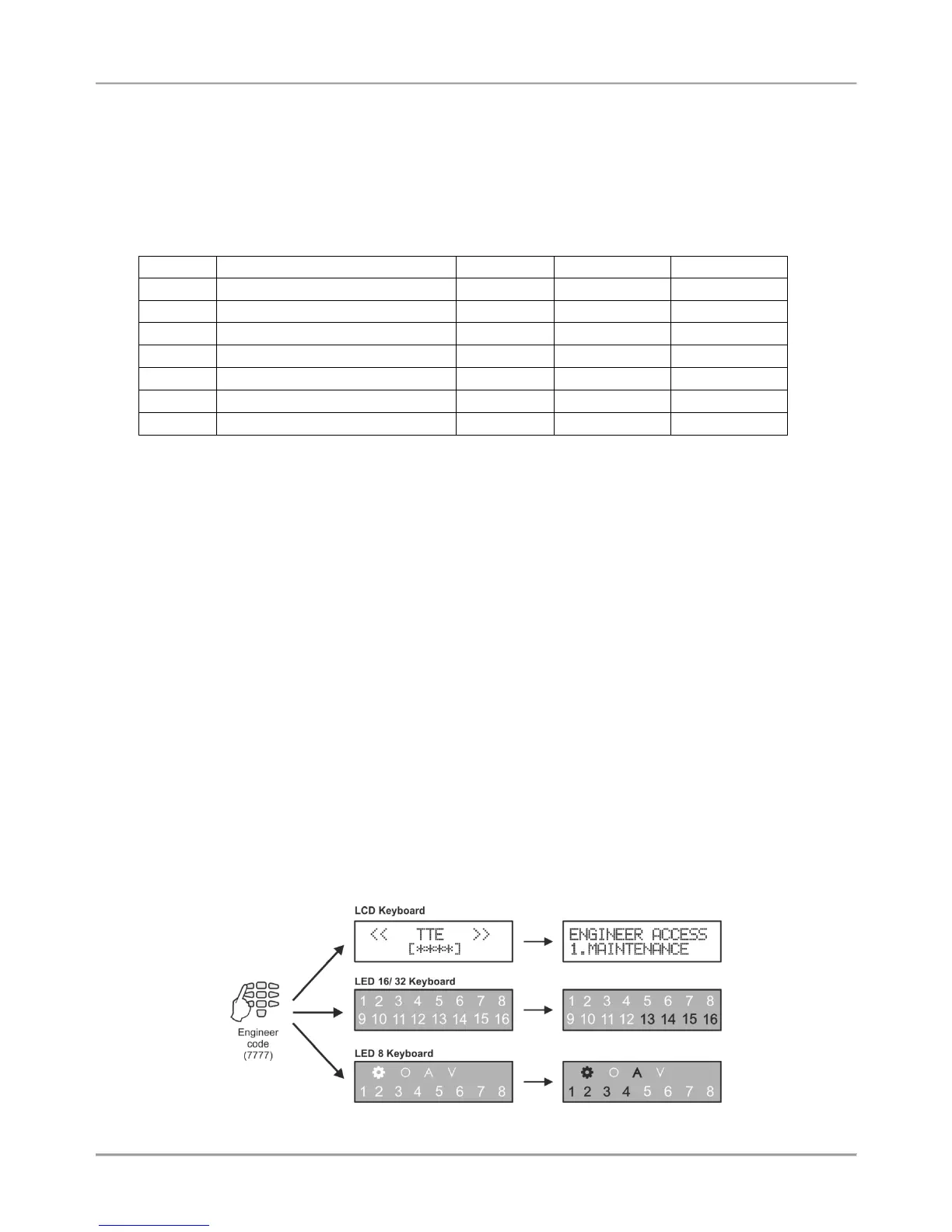 1. Enter engineer code (7777 by default) – zone numbers 13, 14, 15 and 16 are lighting on. (For LED 8/ 16A –