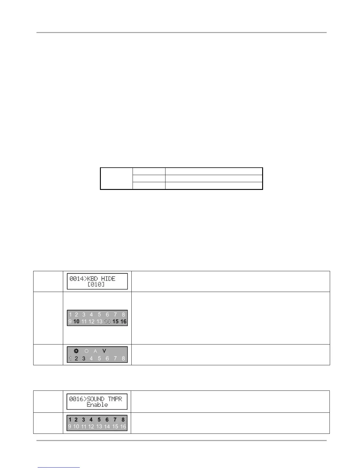 The indication while programming different system parameter is performed in several common types according the