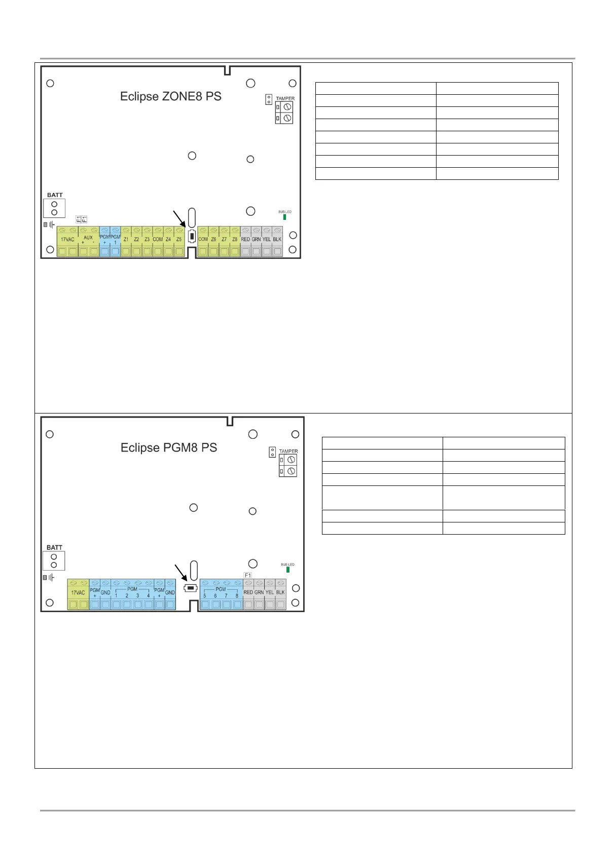Tamper – Terminals for Tamper switch. Set a jumper on the terminals if the tamper switch is not used.