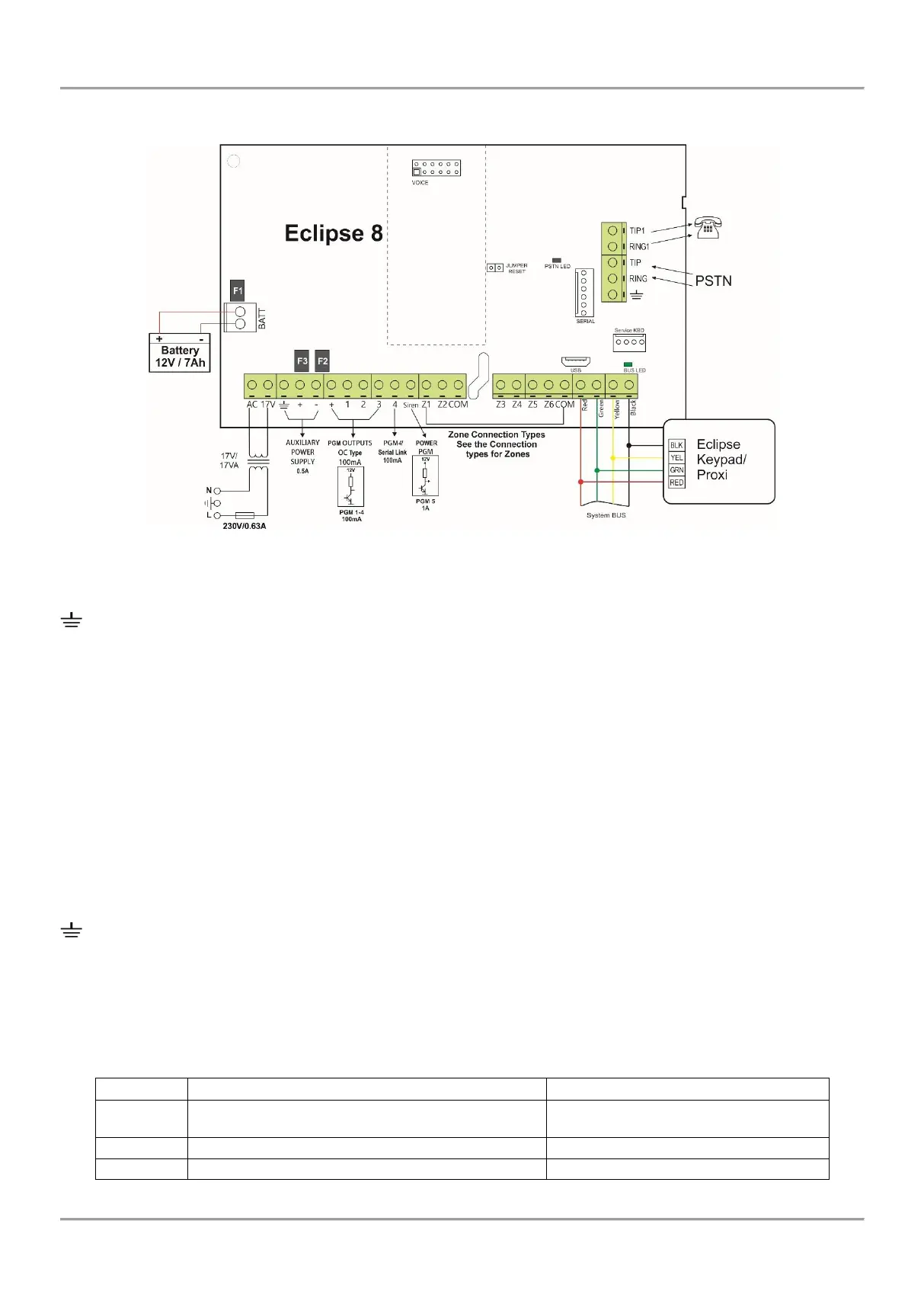 R(red), G(green), Y(yellow), B(black) - System bus interface for connection of keyboards and proximity card readers.