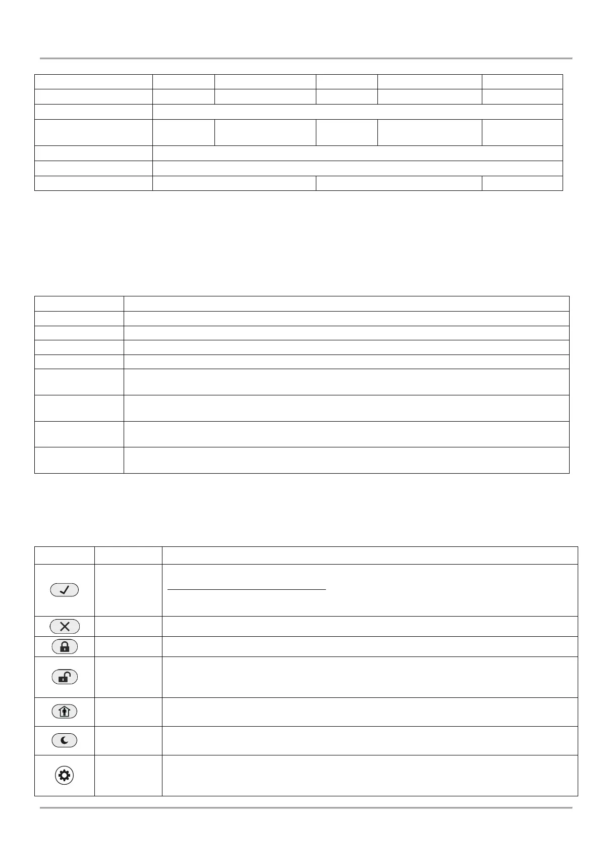Disarming the system. The button has a special function in text entering mode – deletes