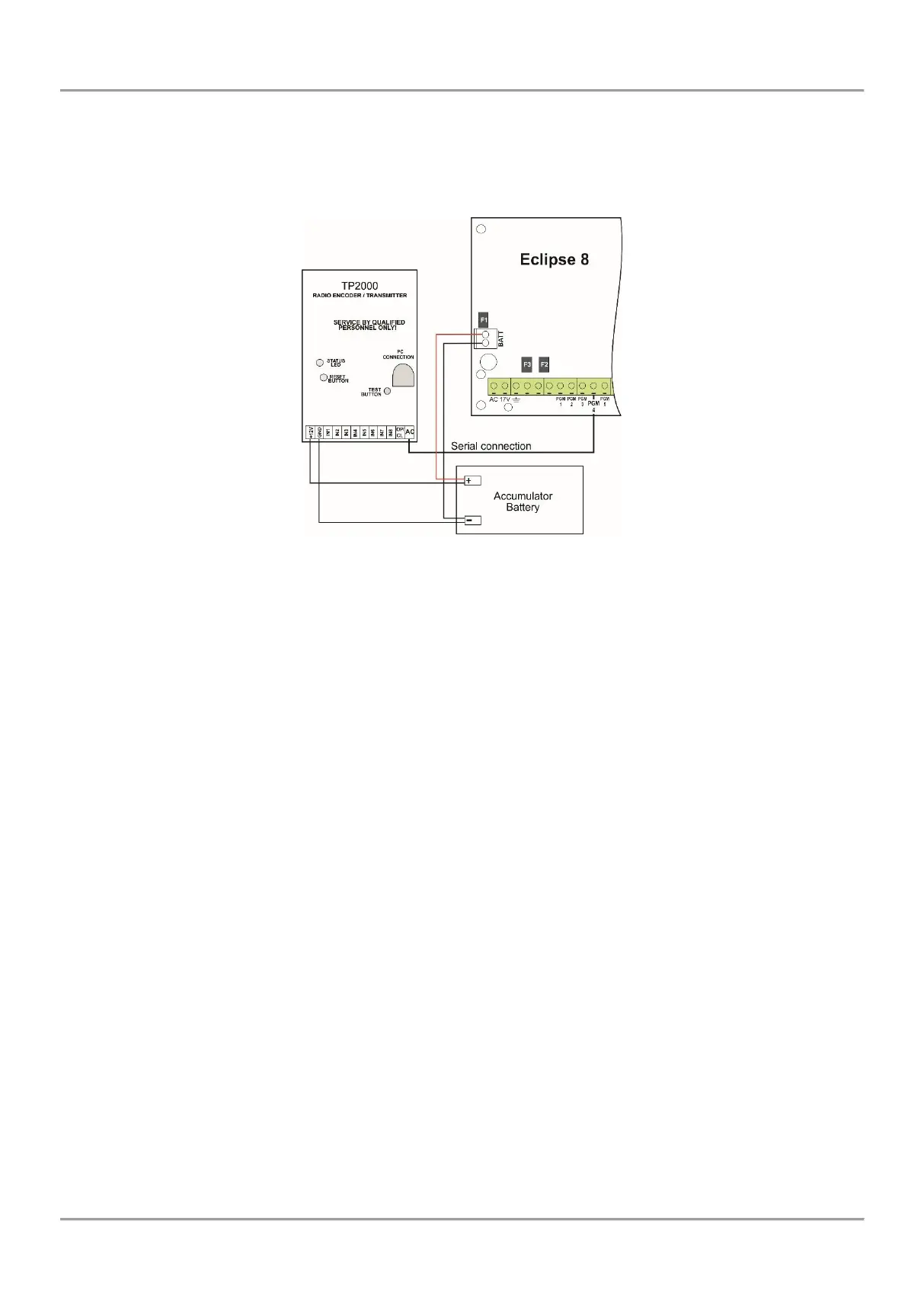 Figure 21. Serial connection between TP2000 transmitter and ECLIPSE 8 control panel