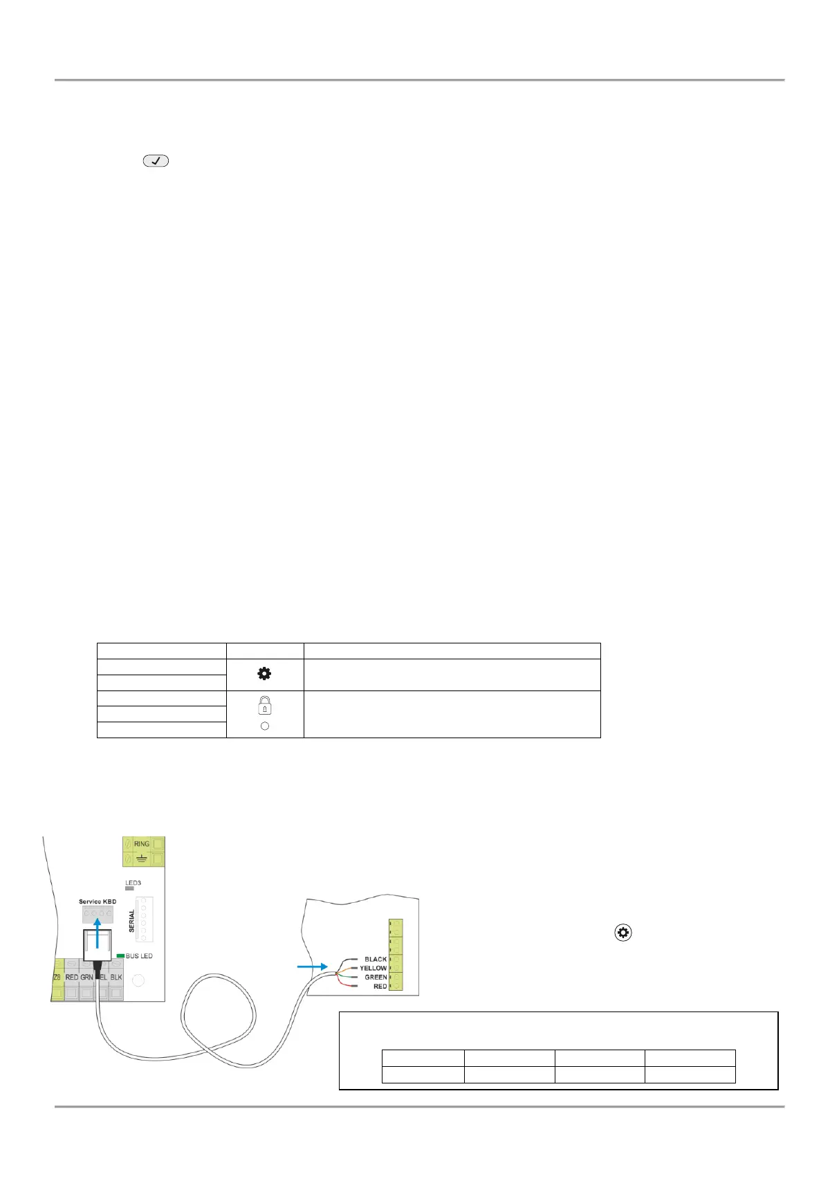 The “Service keyboard” mode allows access only to the engineer programming menus and the Manager and User