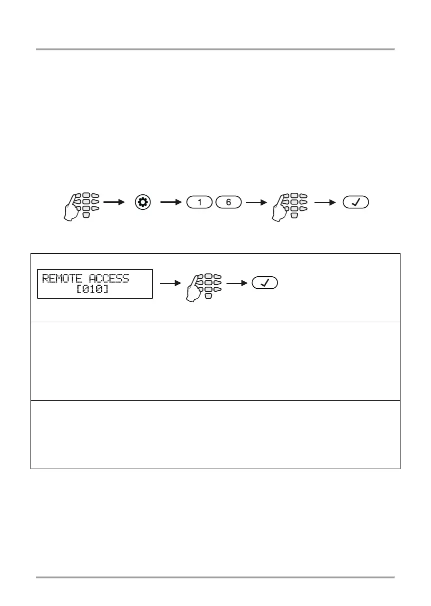 In menu “4. SETTINGS – 5. REMOTE ACCESS” or Address 16 the Manager can enter