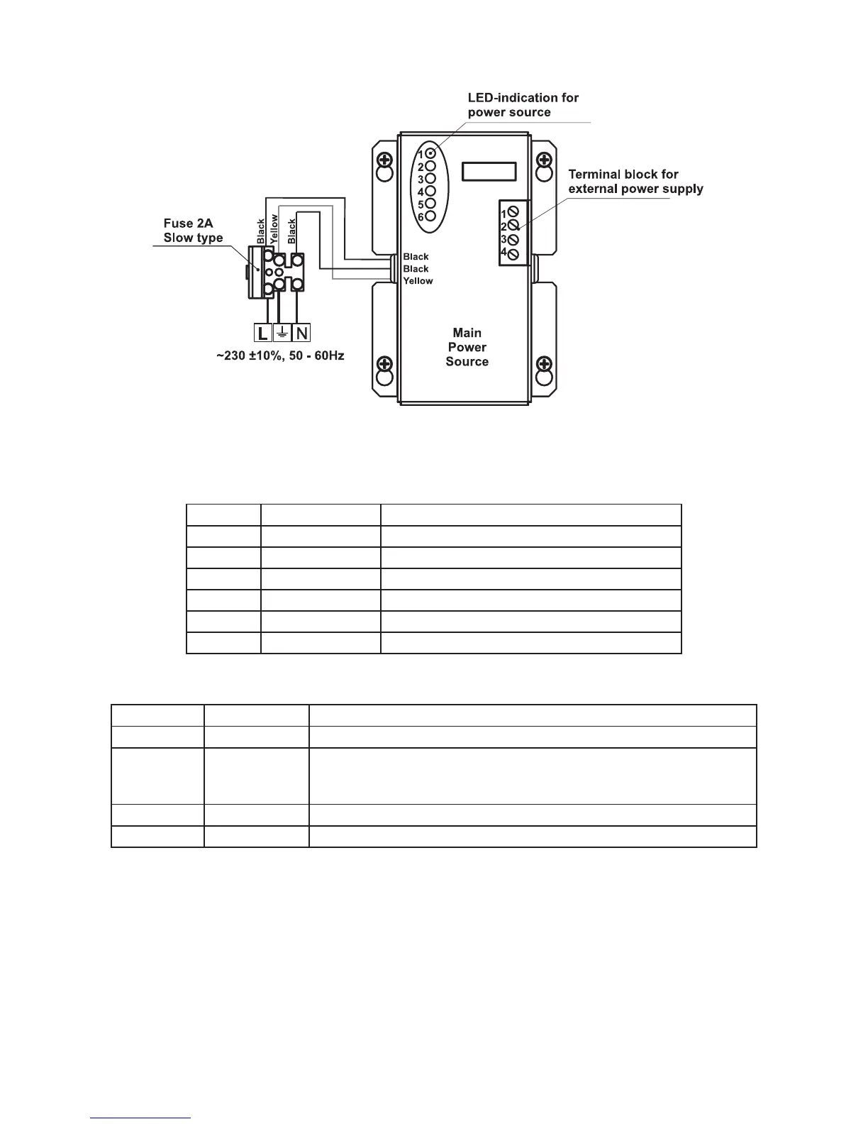 1 GND Input for connectin of external power supply EARTH.