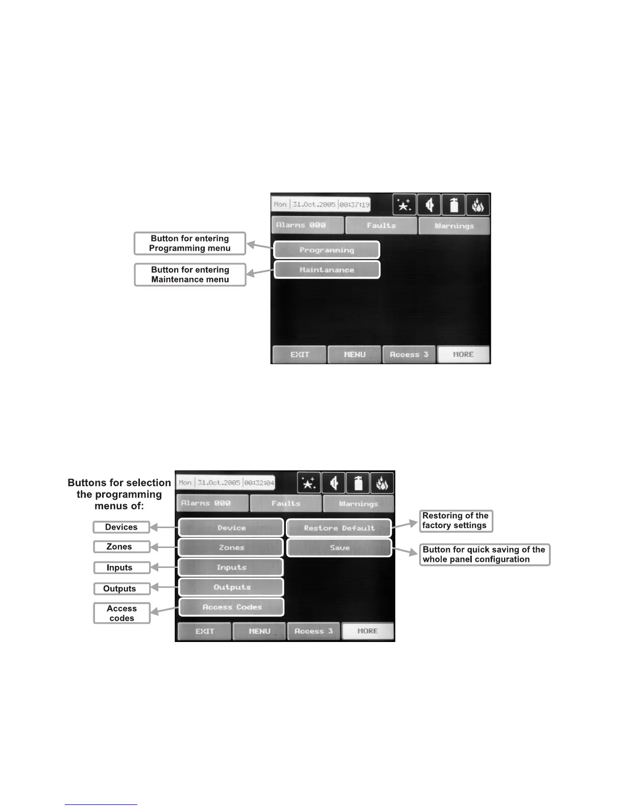 To enter in the Programming Menu the installer has to choose button “Programming”. The general view of