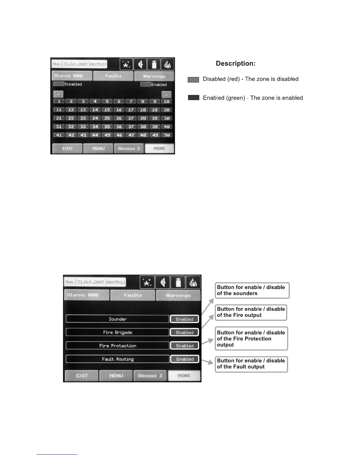 tored outputs of the IRIS fire panel – Sounder, Fire Brigade, Fire Protection and Fire Routing – Fig. Screen 29.