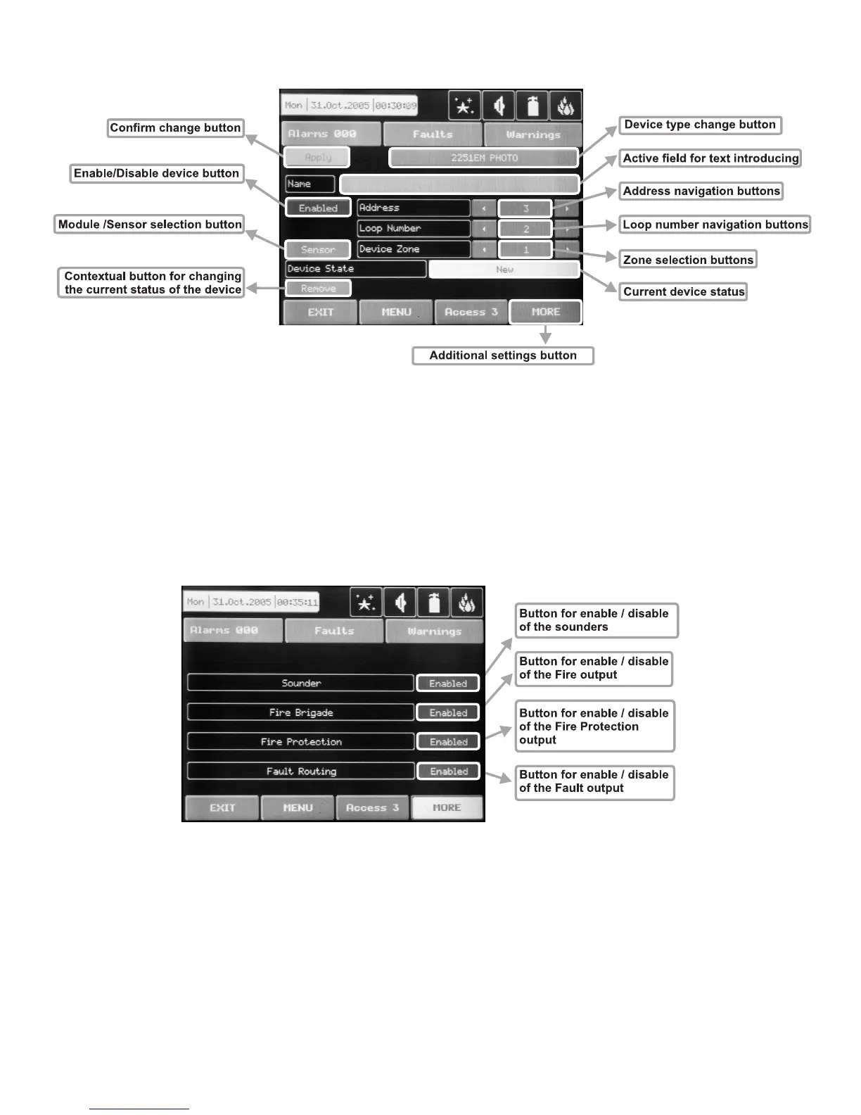 and “General Fault” LED-s are activated. Any disabled device will not generate messages to the panel. In