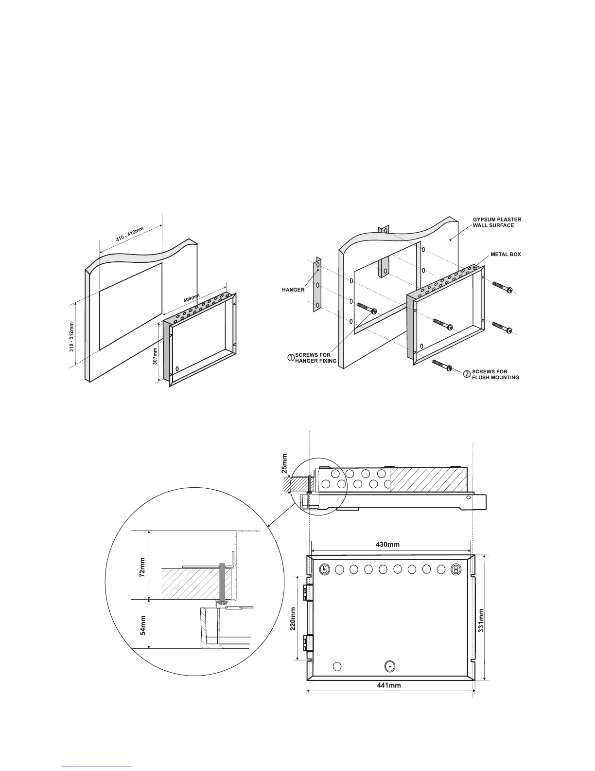 • Use given on Figure 6 dimentions to outline and to cut the mounting hole in the gypsum plaster wall.
