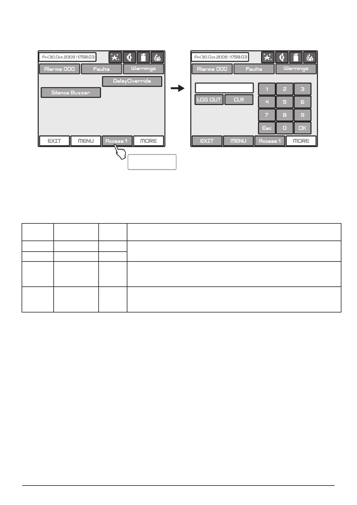 pressing the CLR button. Exit from the access level is by pressing the LOG OUT or Esc button. The other