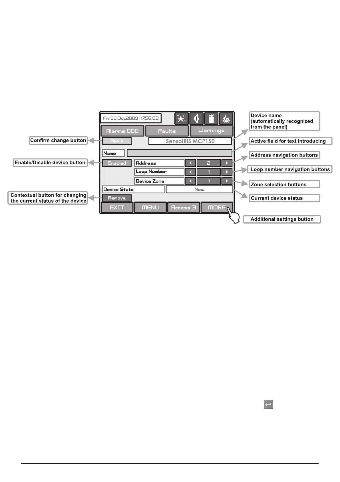 • Loop Number Navigation Button - These keys alternate the loop (in sequence or directly) of the screened devices.