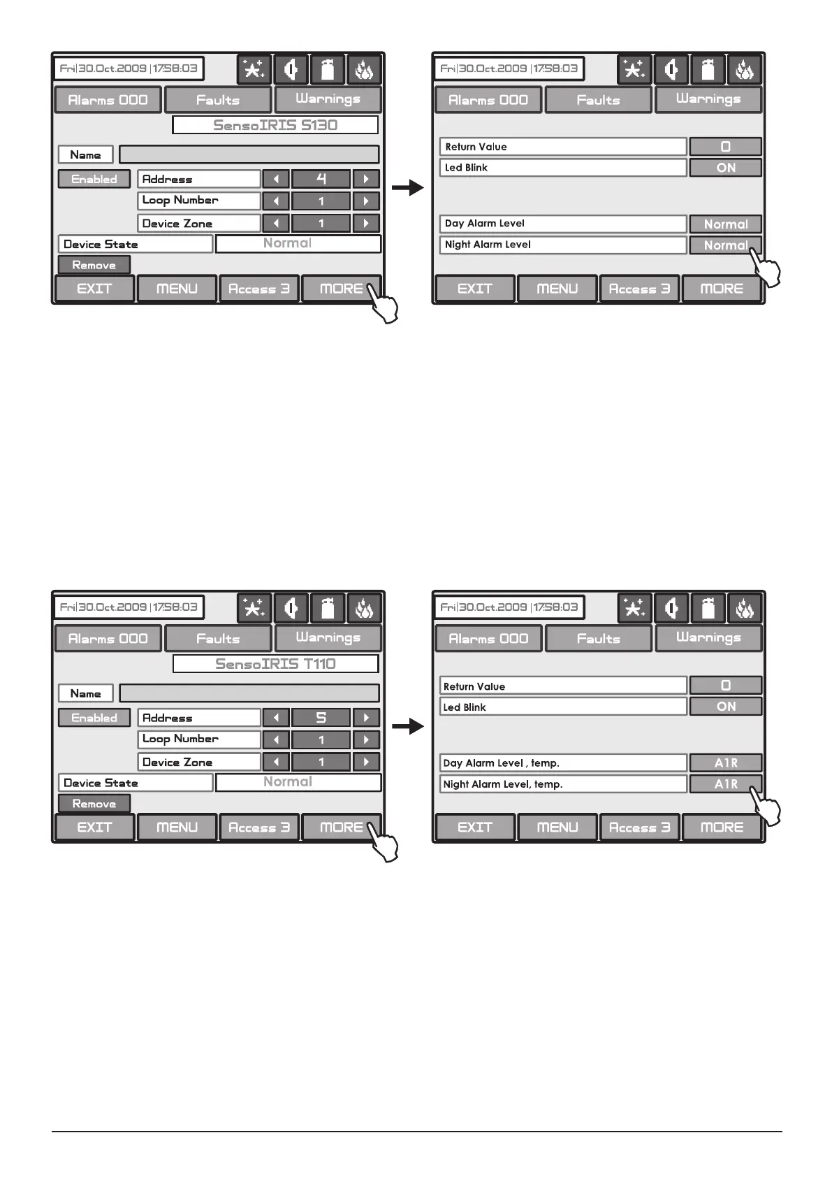 On Fig. Screen 13b is shown the SensoIRIS T110 (addressable temperature detector) settings screen. Choose the