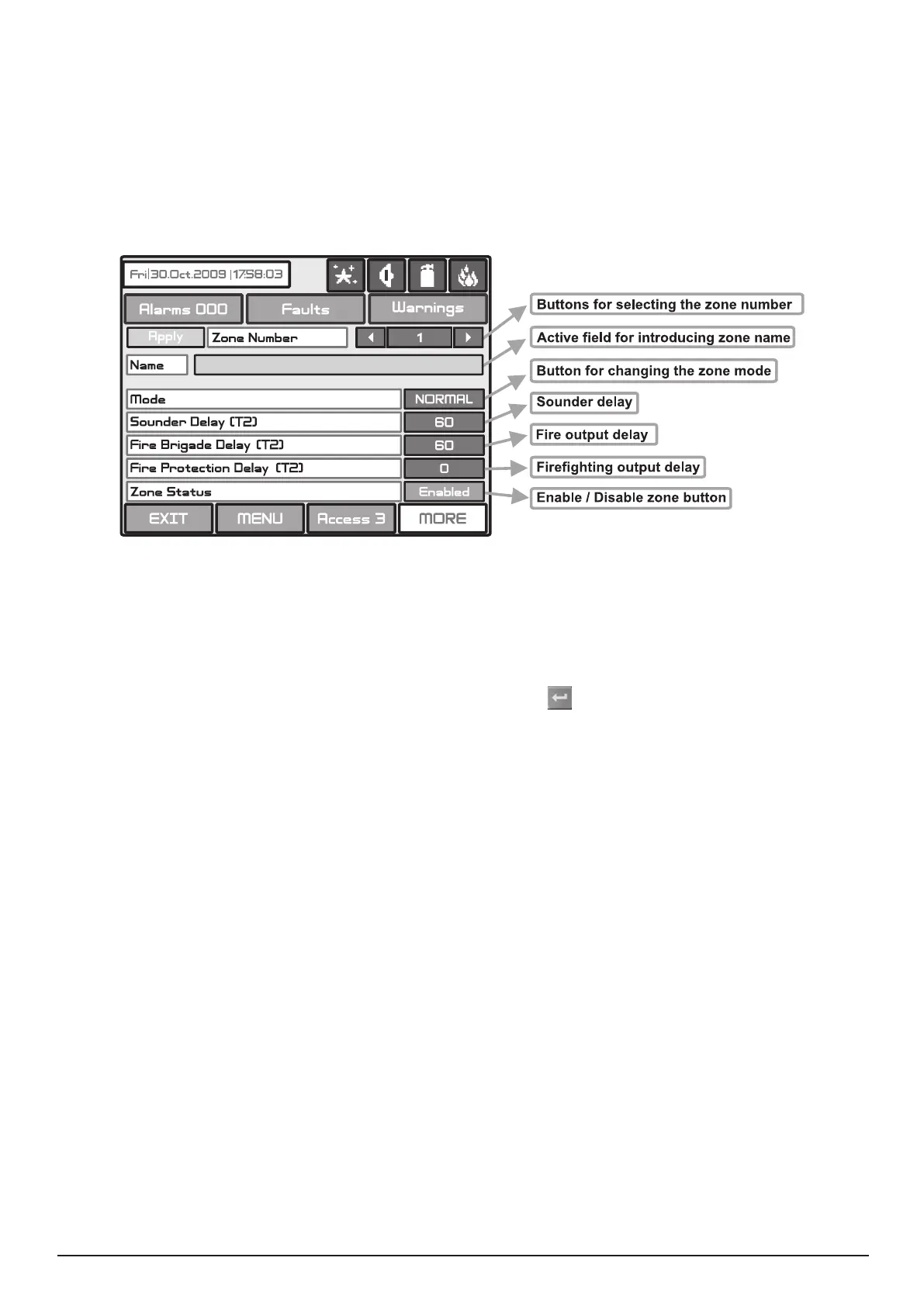 Choose the button to enter the screen (Fig Screen 9), for introducing the zone name, which shall not exceed