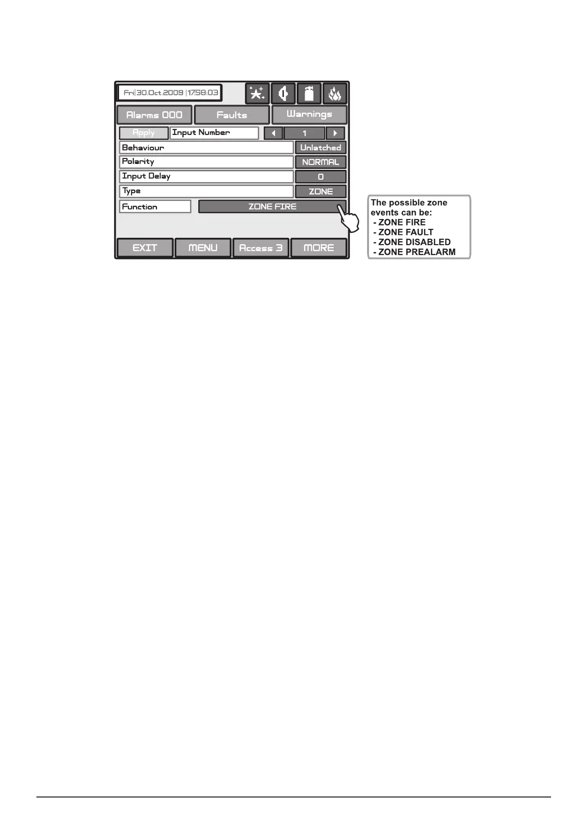 Fig. Screen 16 - Menu for zone events introducing.