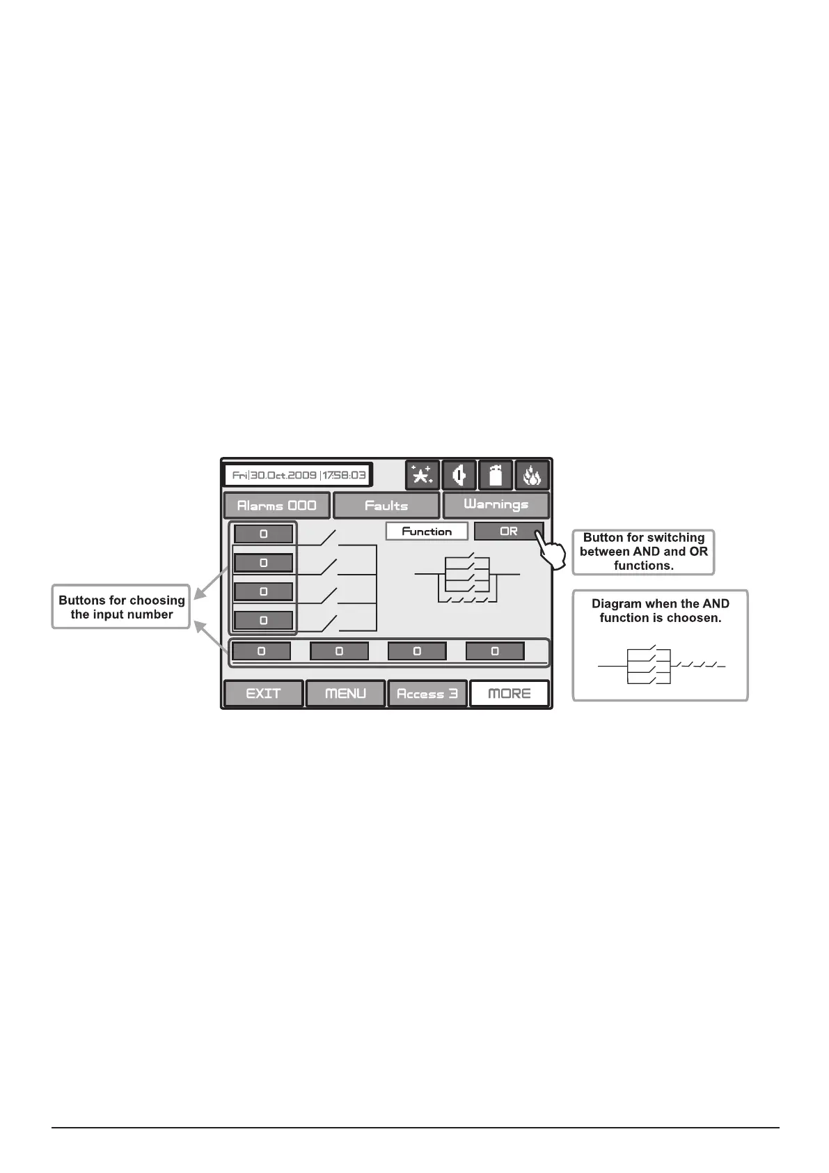 • - the output is set at ON, when the result of the logical function is TRUE.