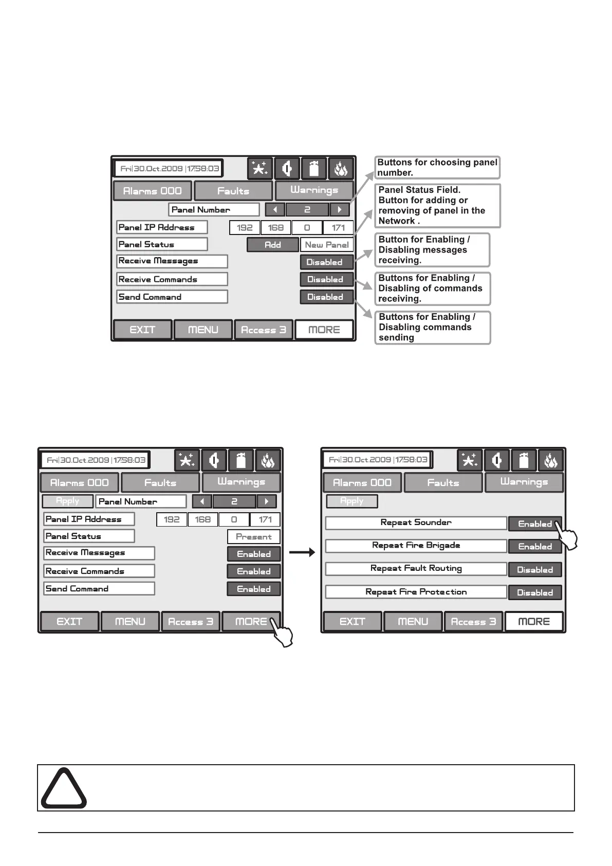 • Repeat Fire Protection - Follows the Fire Protection output status of the remote panel including the de-