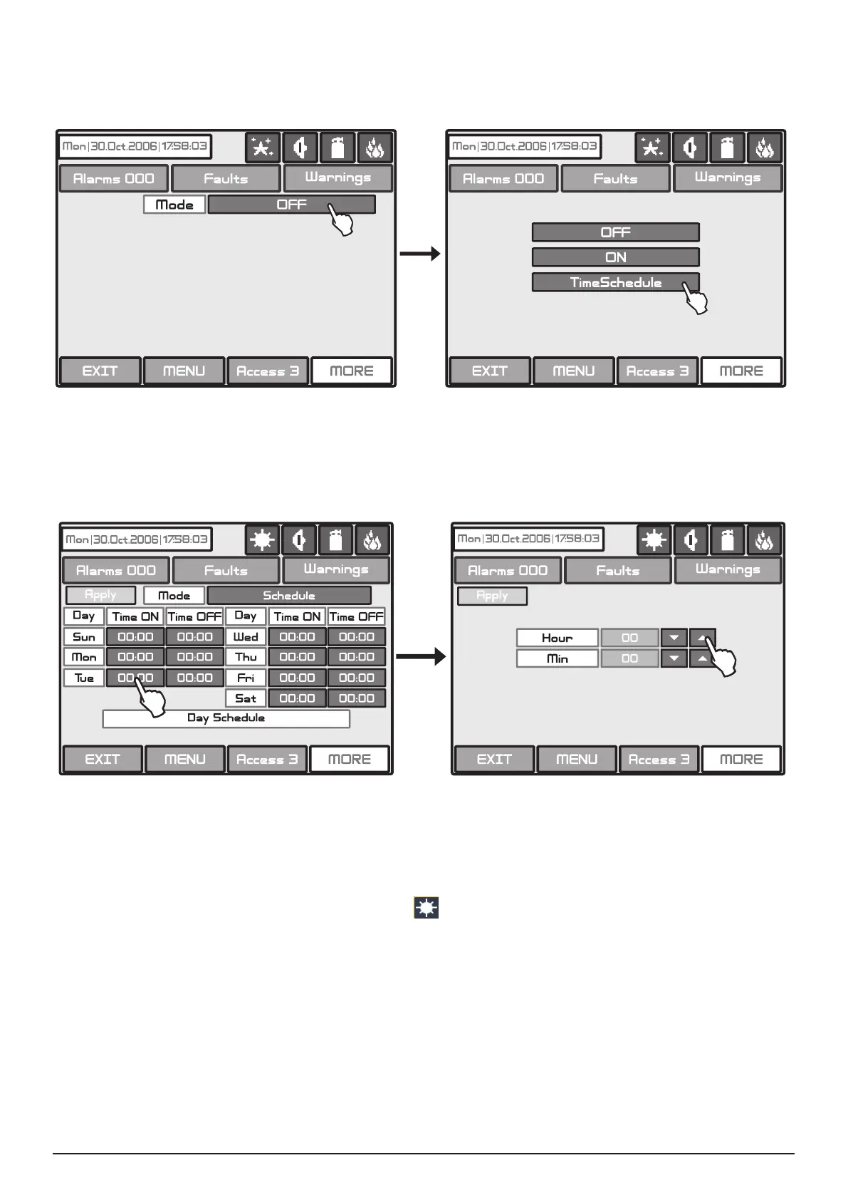 In Schedule mode the initial hour and minutes (the time when the daytime mode is activated) and the end