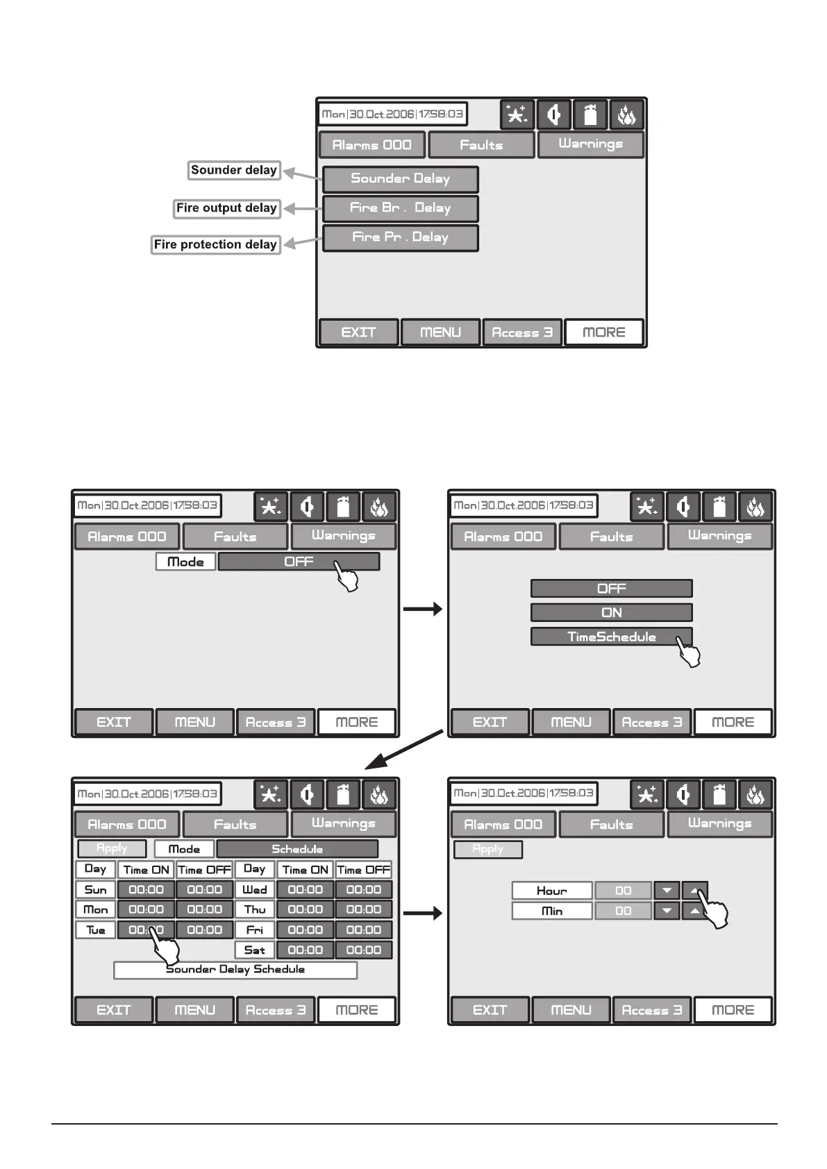 Choose “Sounder Delay” button from “Output Delay” Menu - Fig. Screen 31 to enter the submenu for sound-