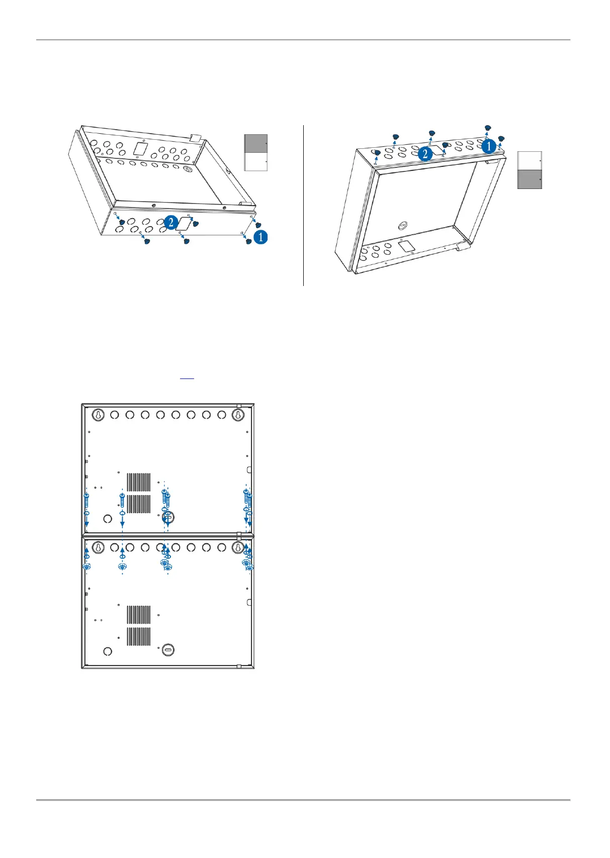 • Prepare the metal boxes for mounting to each other as remove the plastic caps from the top or bottom side of