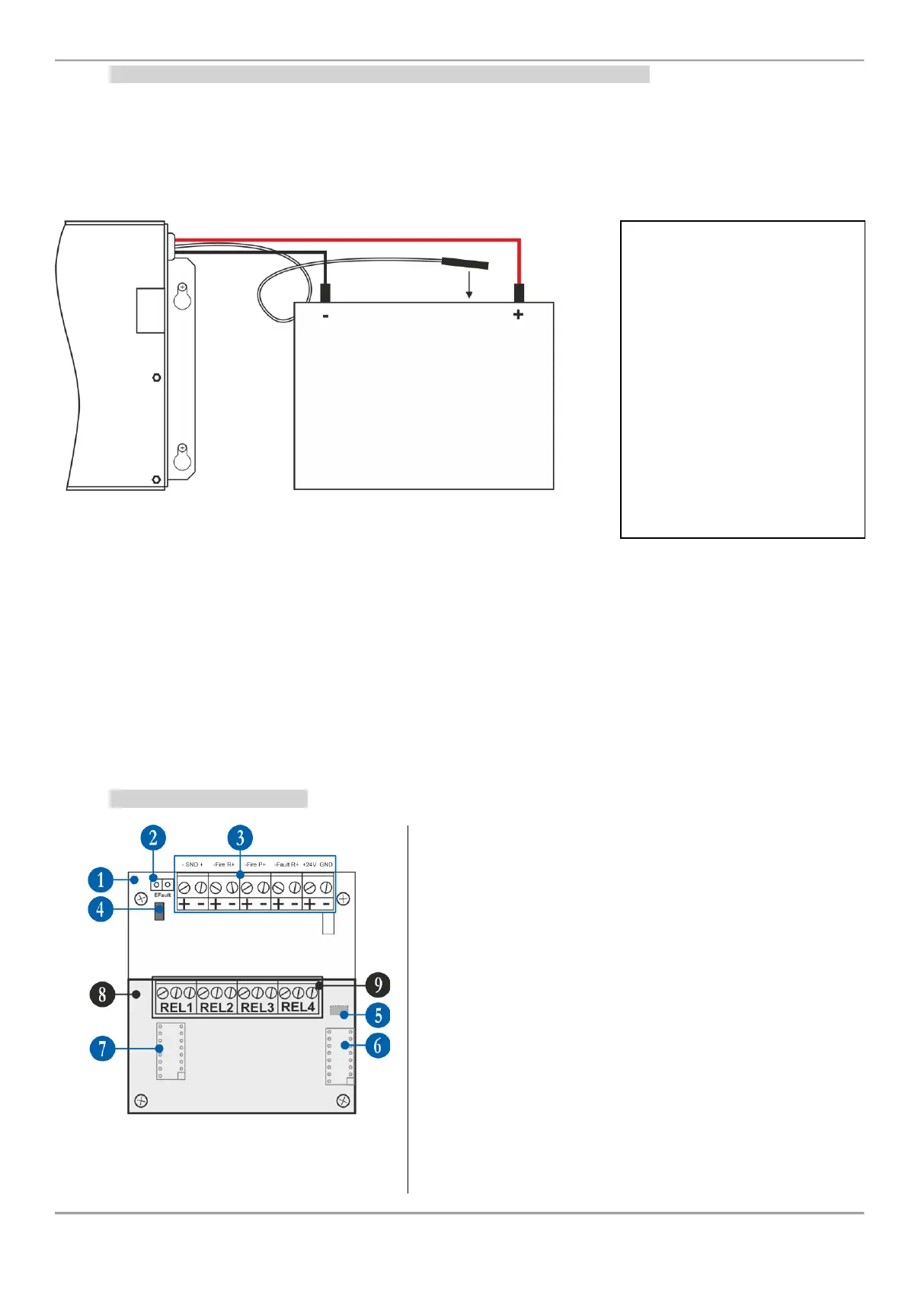 connecting to the main power unit check the polarity of the battery. The battery cannot power up the panel before the