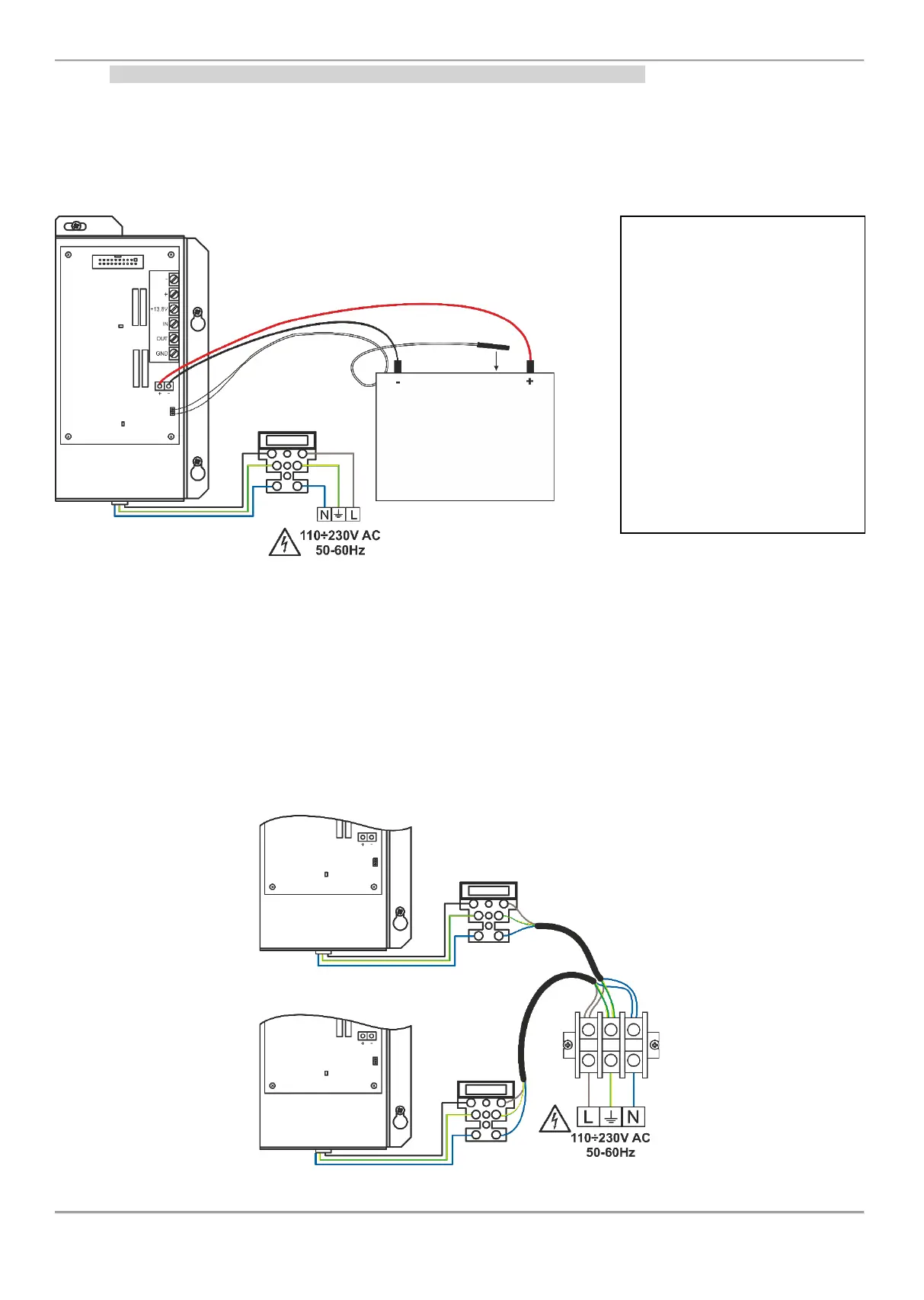 • Connect the 110÷230V AC power source to fuse terminal block as strictly observe the polarity.