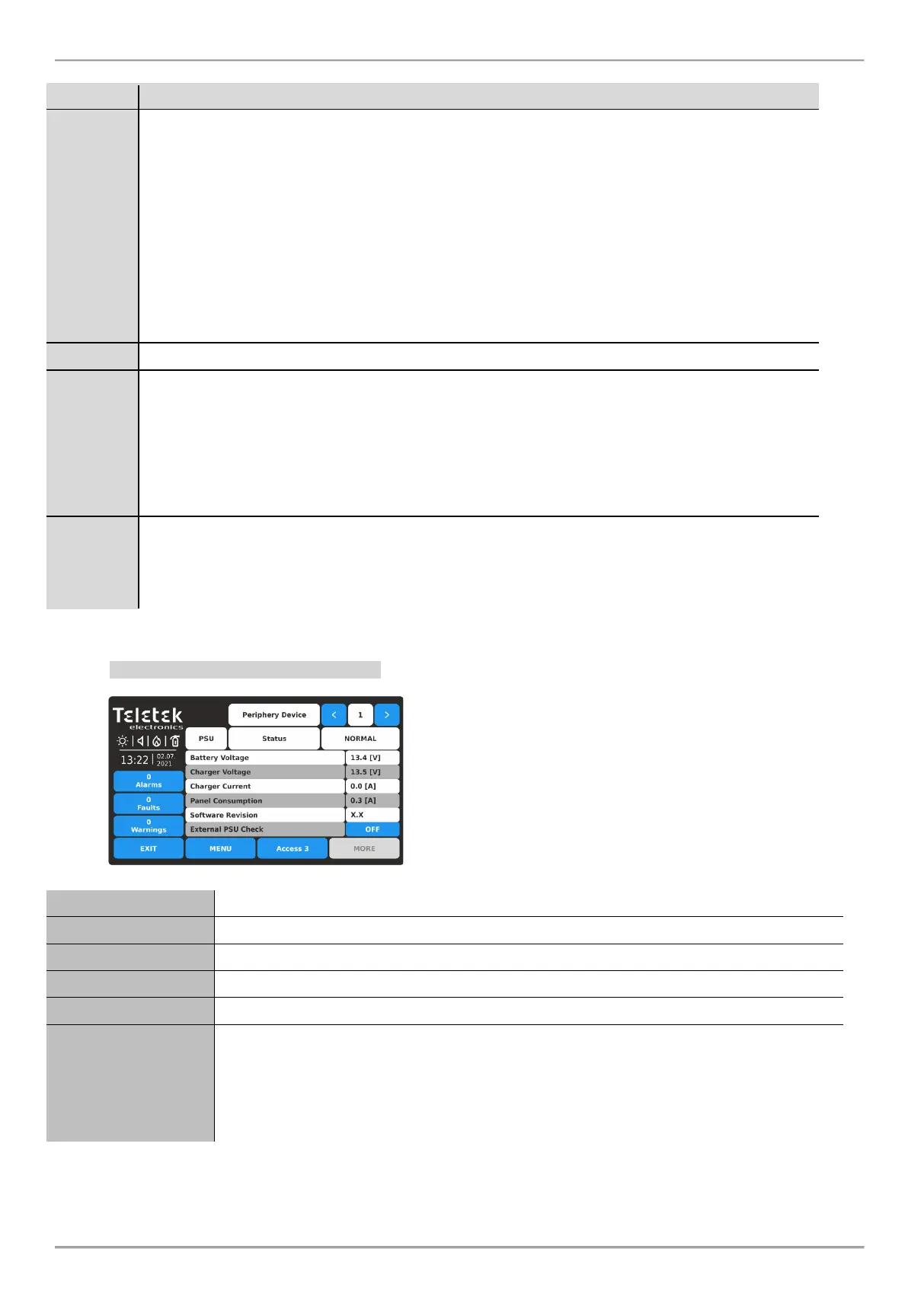 In the following table are described details about the different periphery device status.
