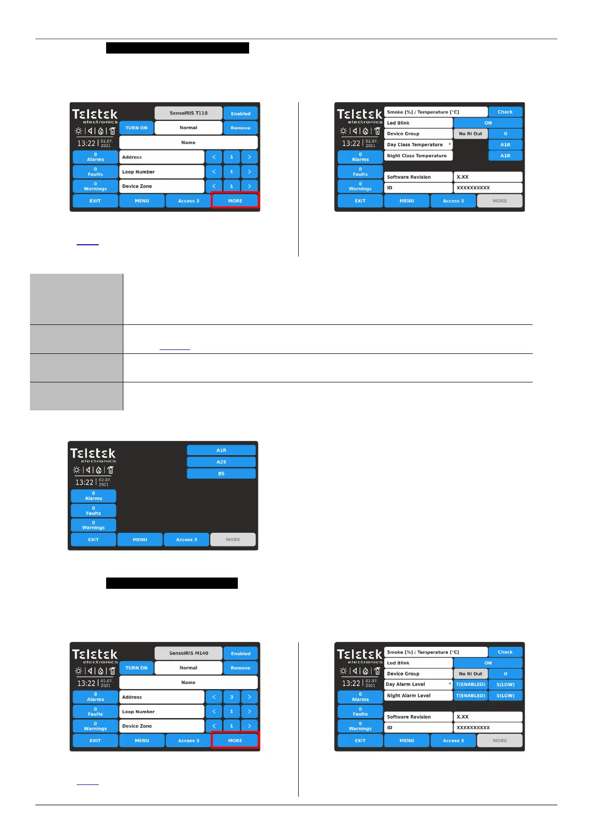 see item 3.2.6. Press MORE button to access some