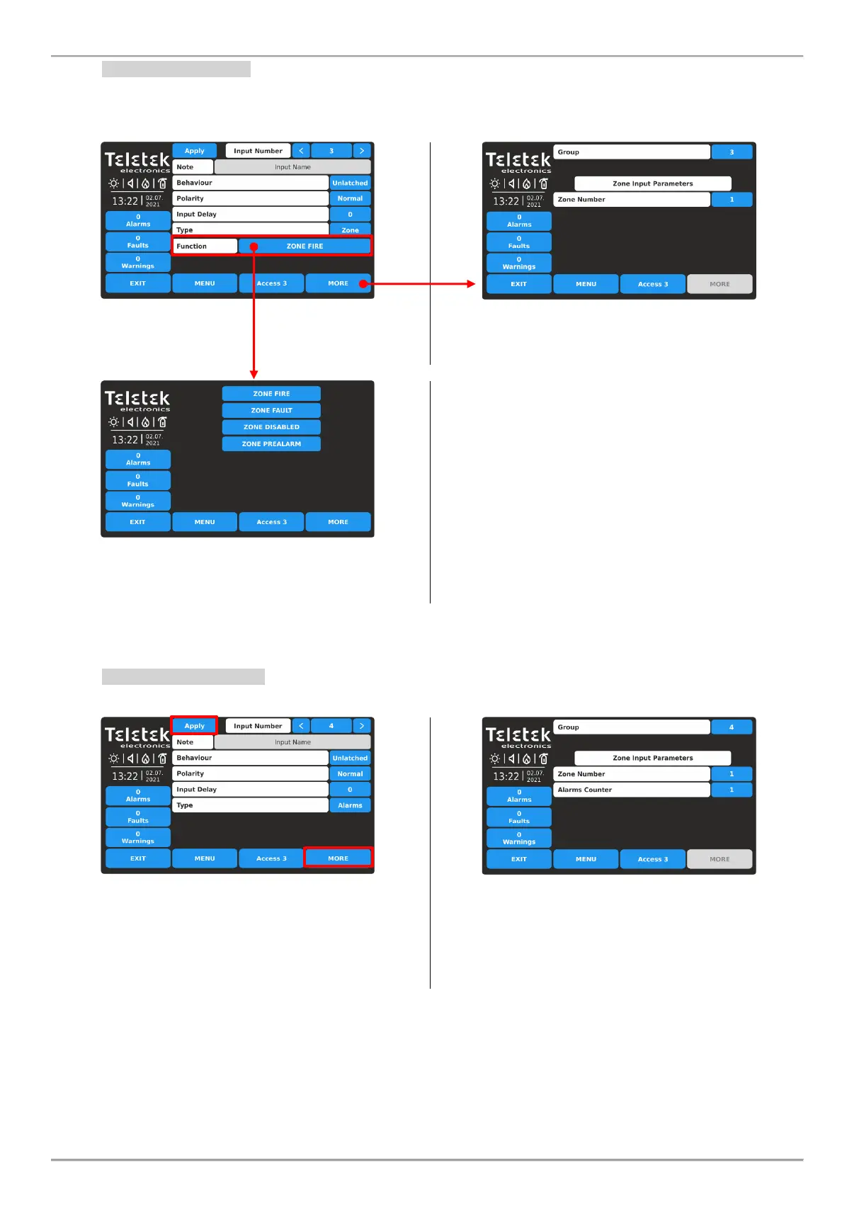 settings for the zone type input. Note that all introduced changes must be confirmed with APPLY button in this main