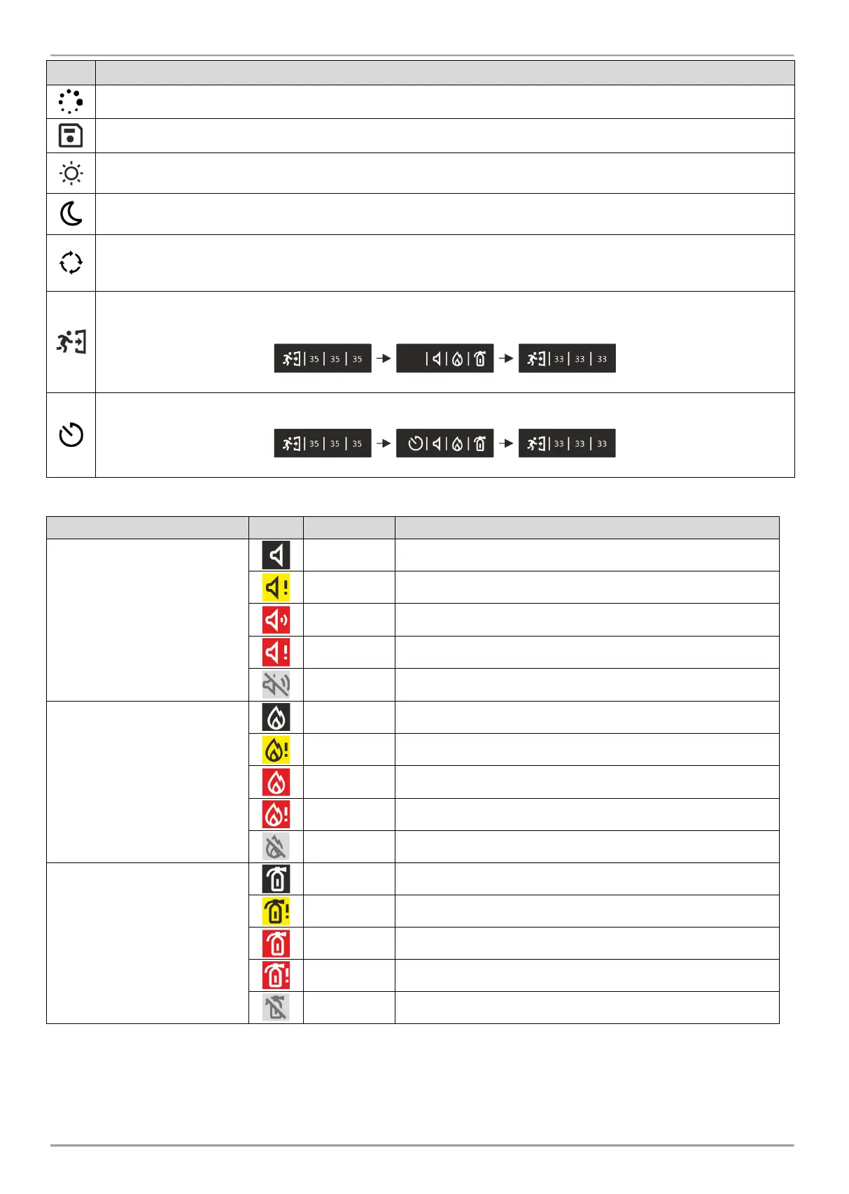 Evacuation time for leaving the premises is running on. The icon is flashing together with the other active icons
