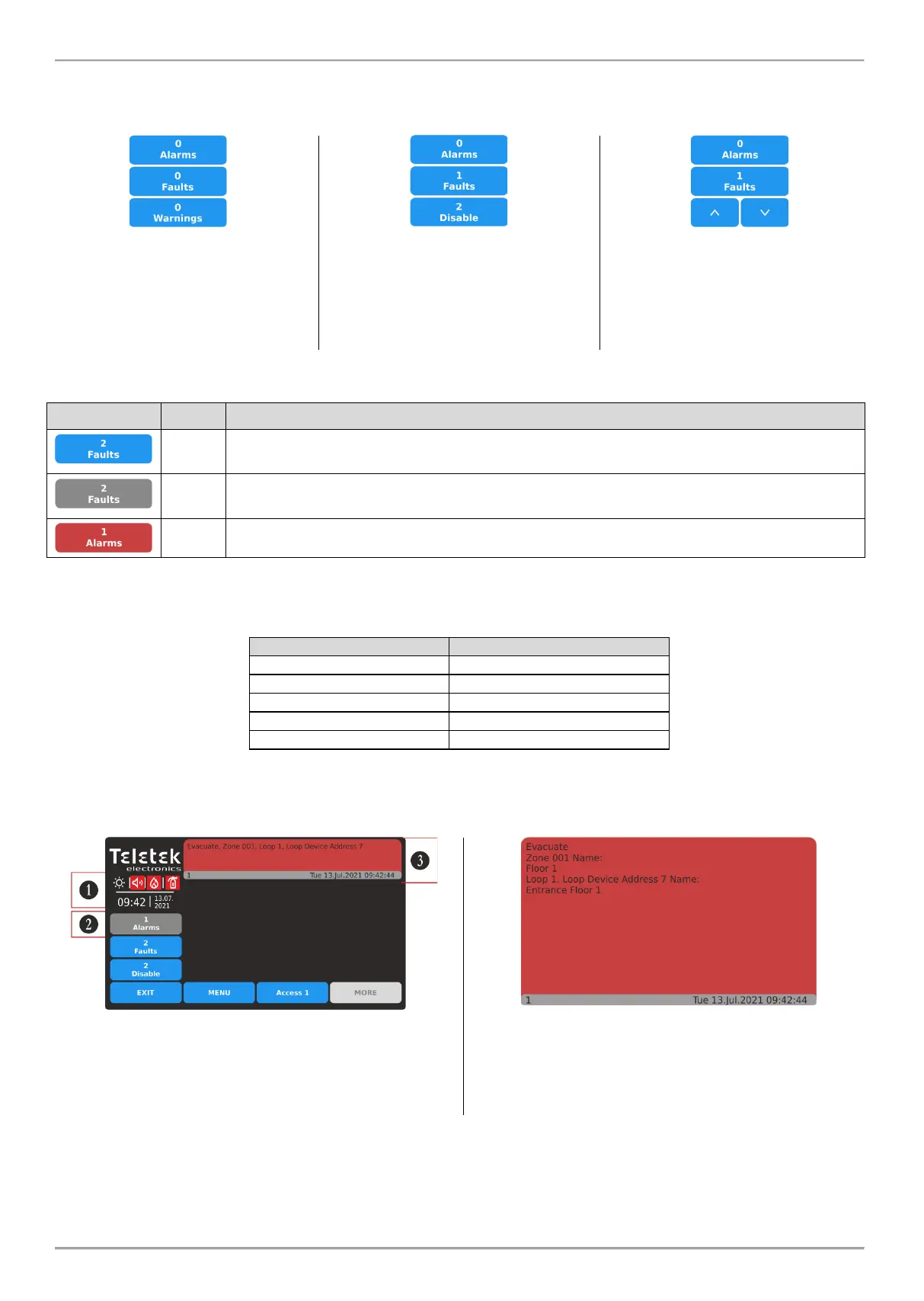 1 – Alarm Mode. Activated sounders and fire panel outputs.