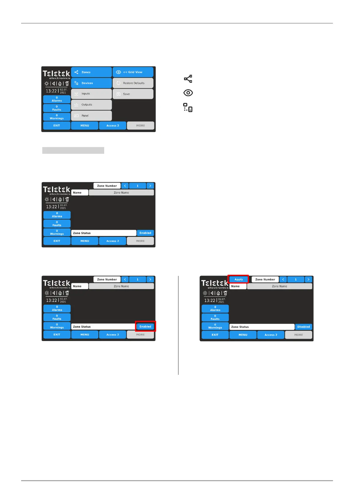 • Zone Status – Active button for changing operation