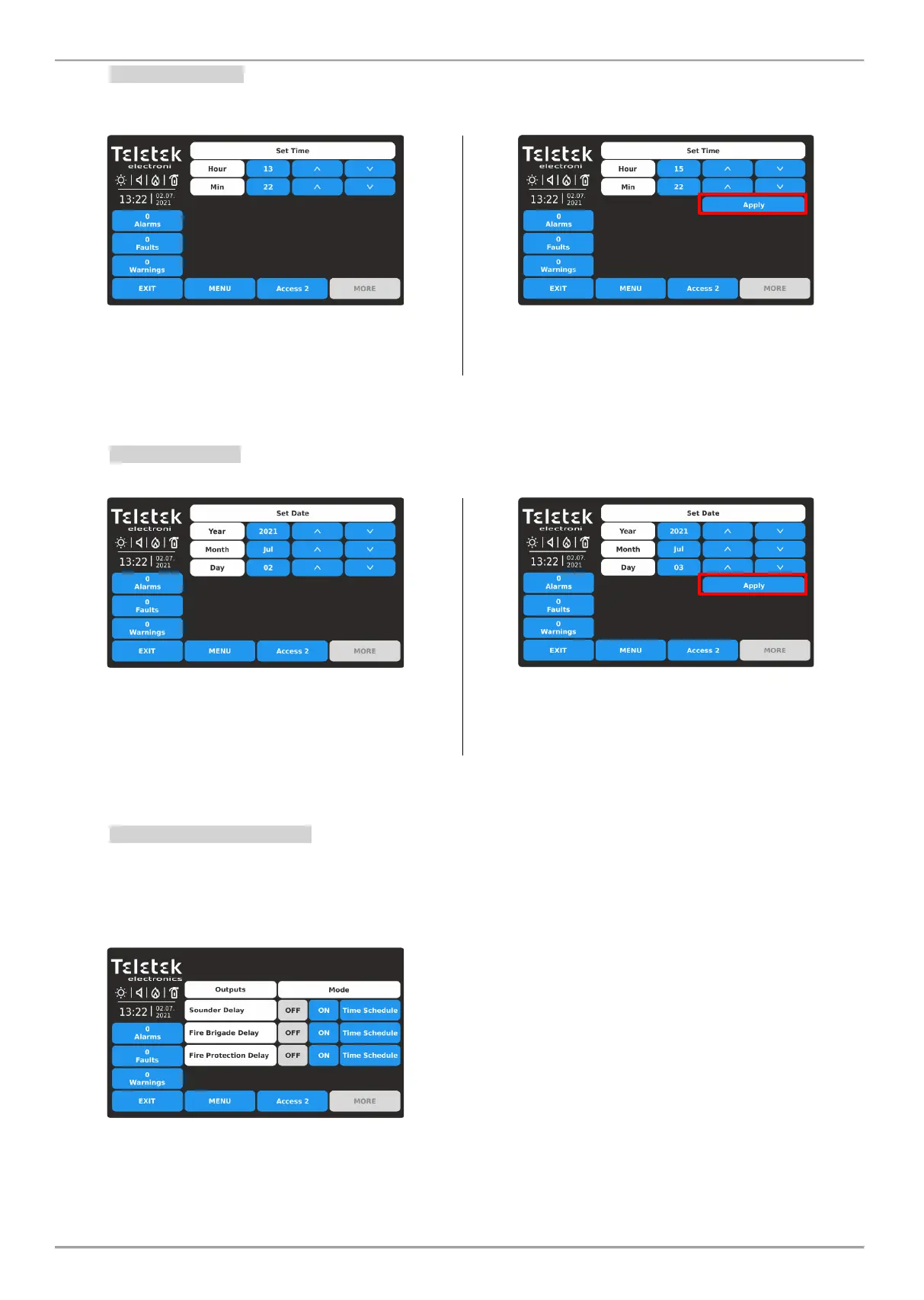 schedule for operation. At Access Level 2, the user has no rights to change the set time schedules for the delays.