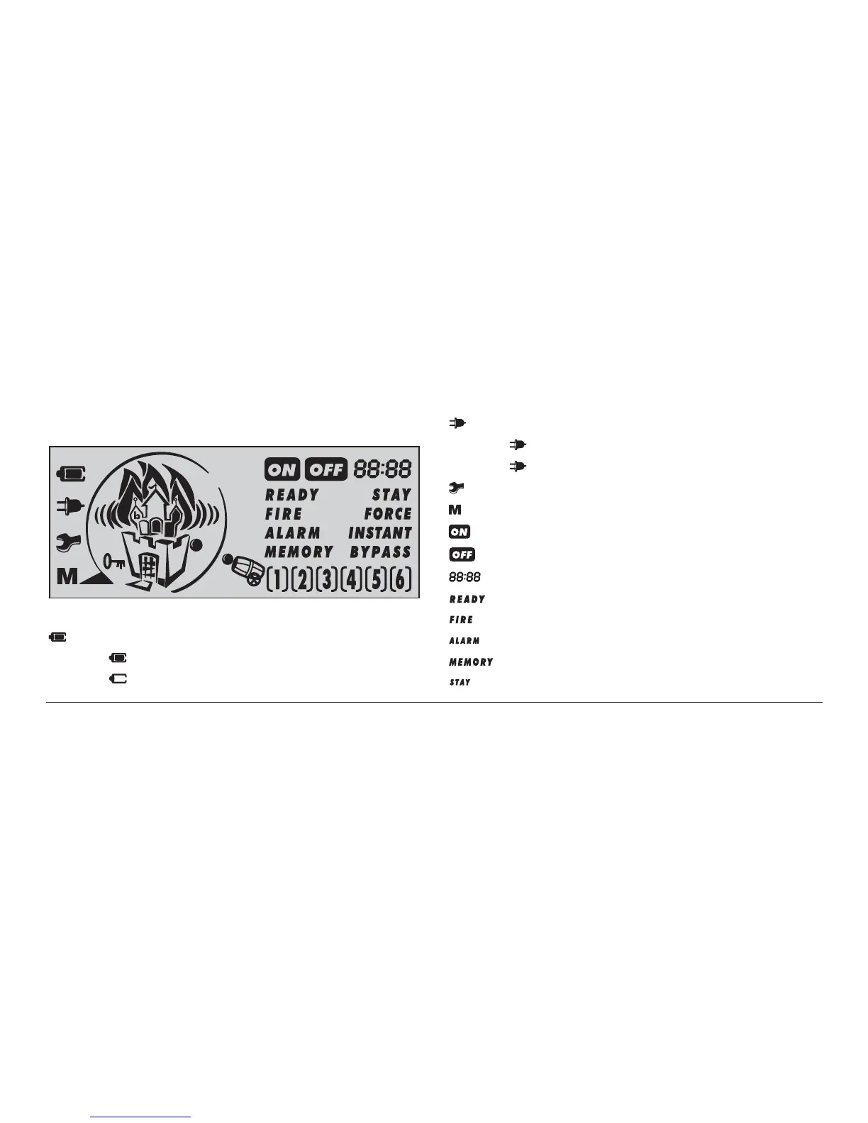 – indicates the system is stay armed (See page 13)