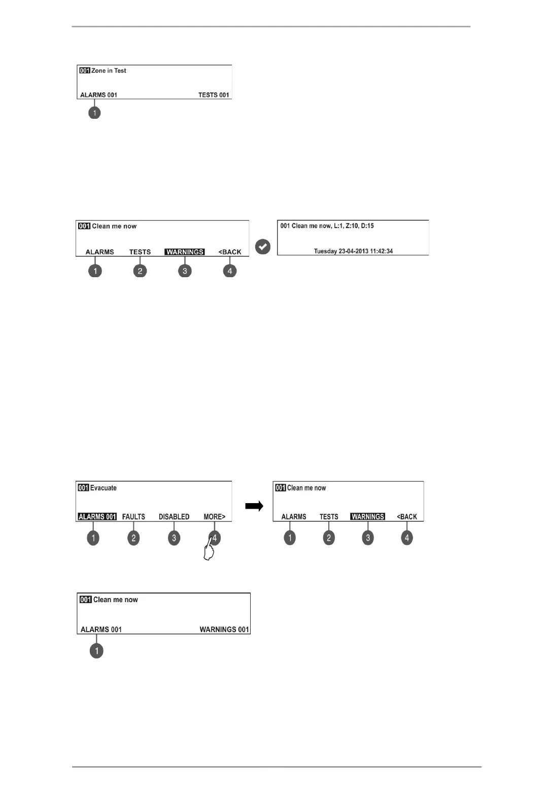 After choosing the button (3) WARNINGS the screen displays: