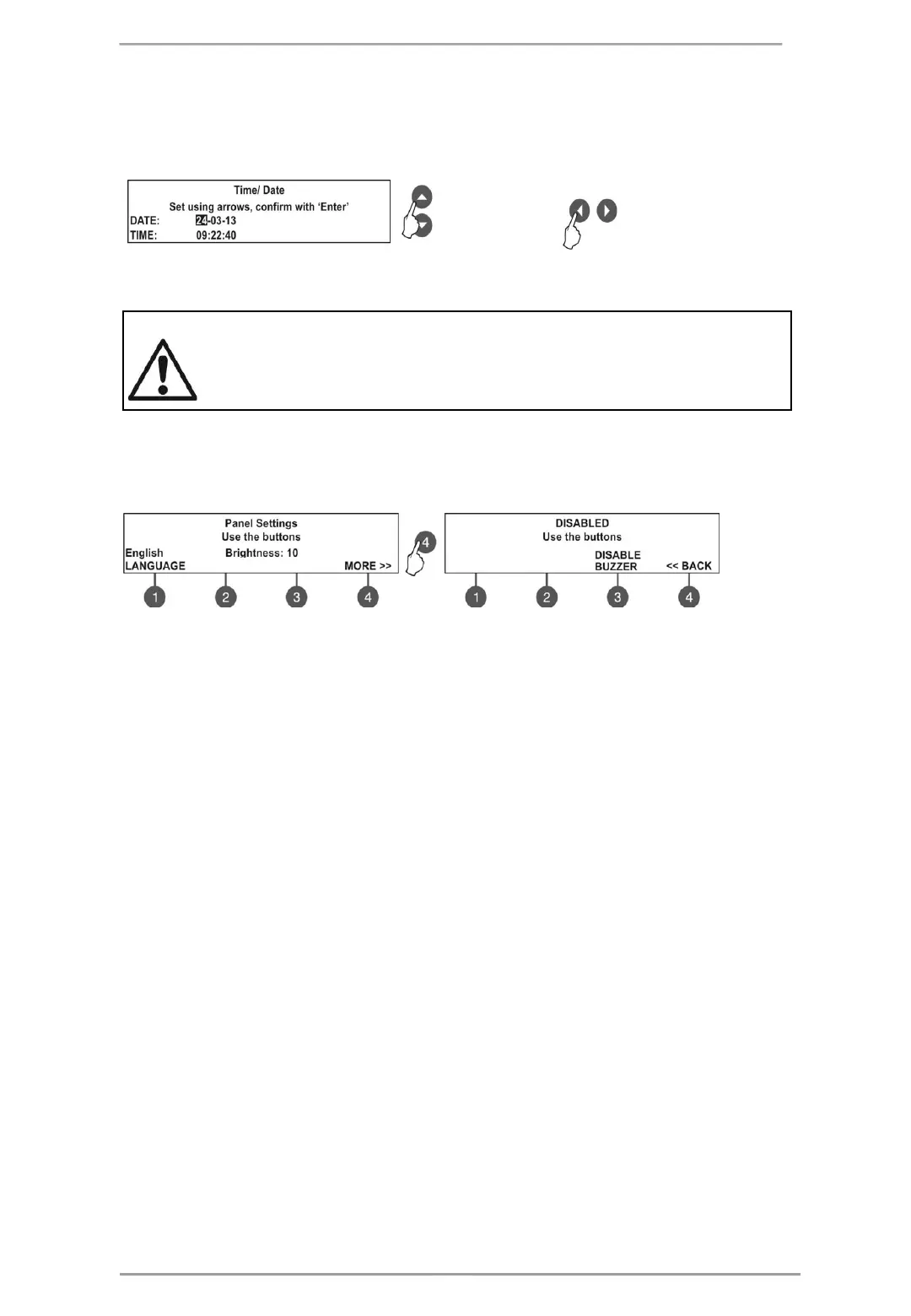 To access the TIME/ DATE submenu, enter in the installer’s menu - 6. GENERAL SETTING - 6.2) TIME/