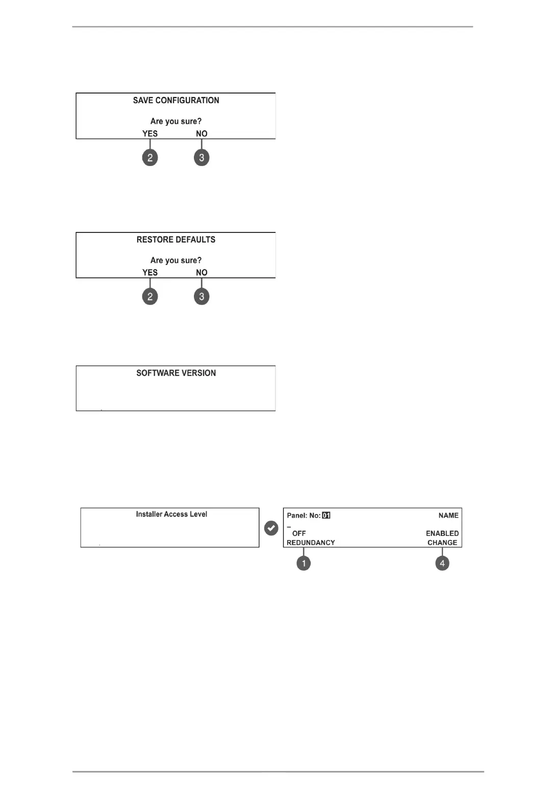 In this menu the installer performs reset to default settings of the system configuration. The panel will ask for
