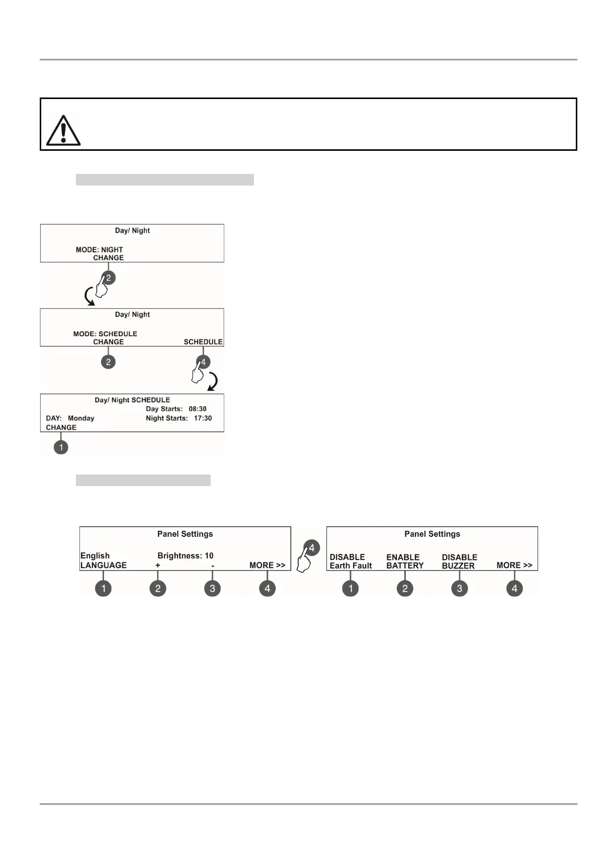 In DAY/ NIGHT SCHEDULE submenu the technician can change the day of