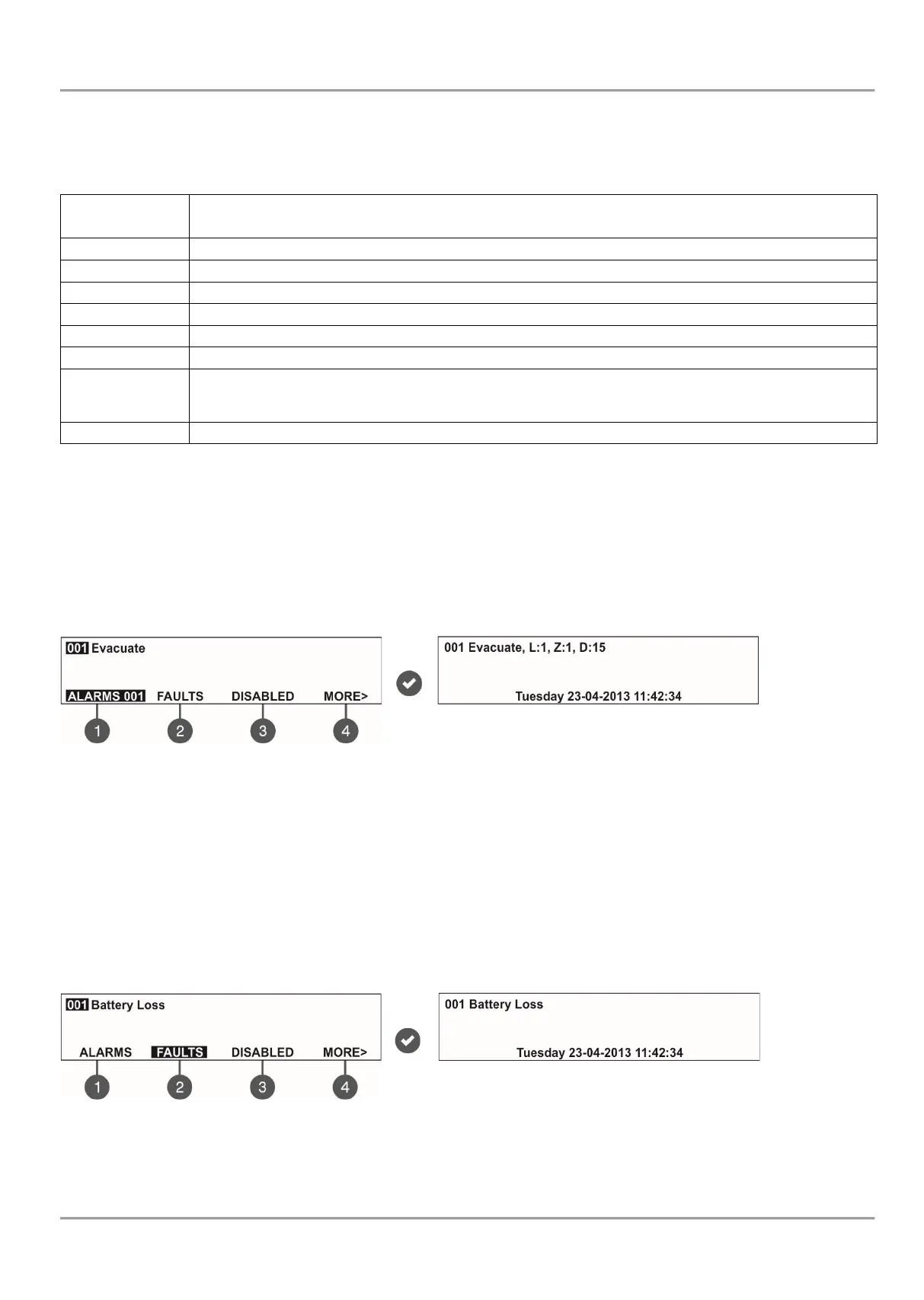 On the screen is displayed information for the loop number and the address of the activated device reported the alarm