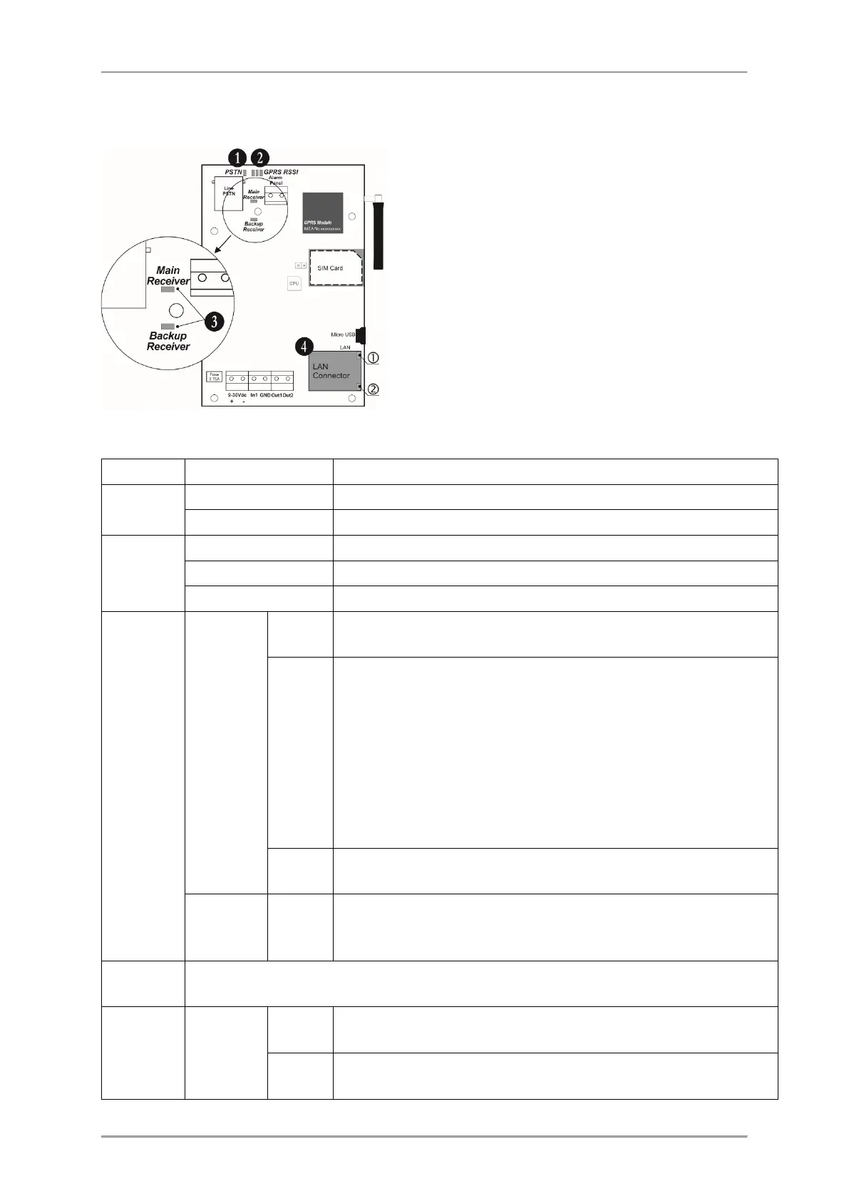 1. PSTN - LED for presence of PSTN telephone line.