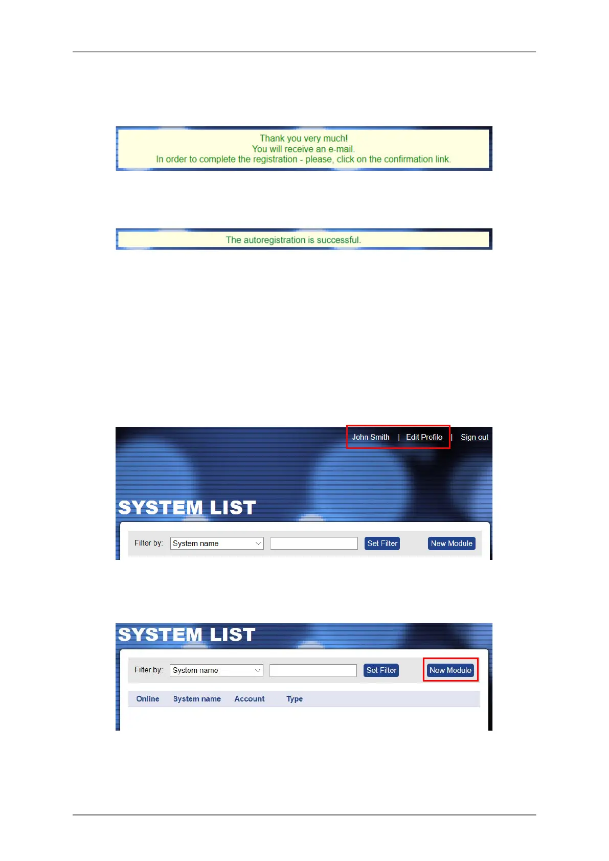 After login, a system list for the User account is shown on. You will see your First and Last names