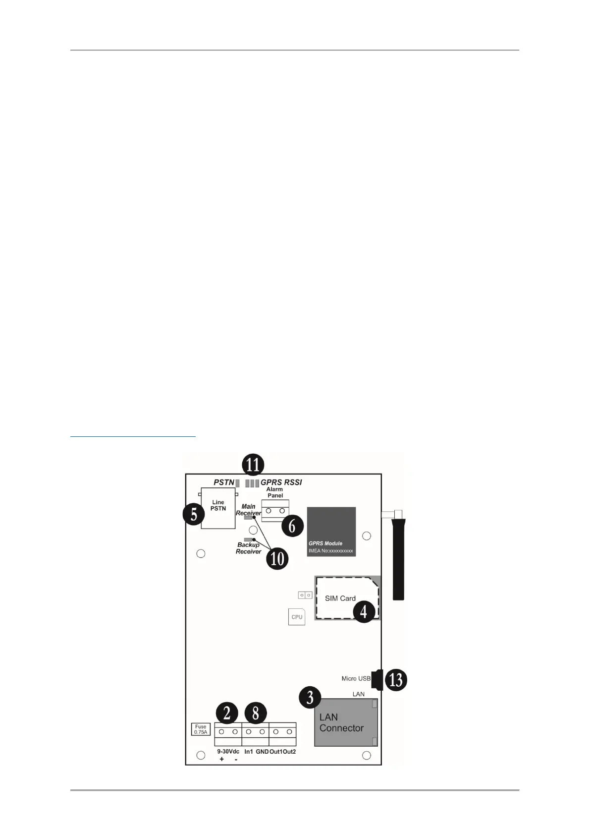 2. Connect the power supply of the module (9-30VDC) – from the control panel or external power