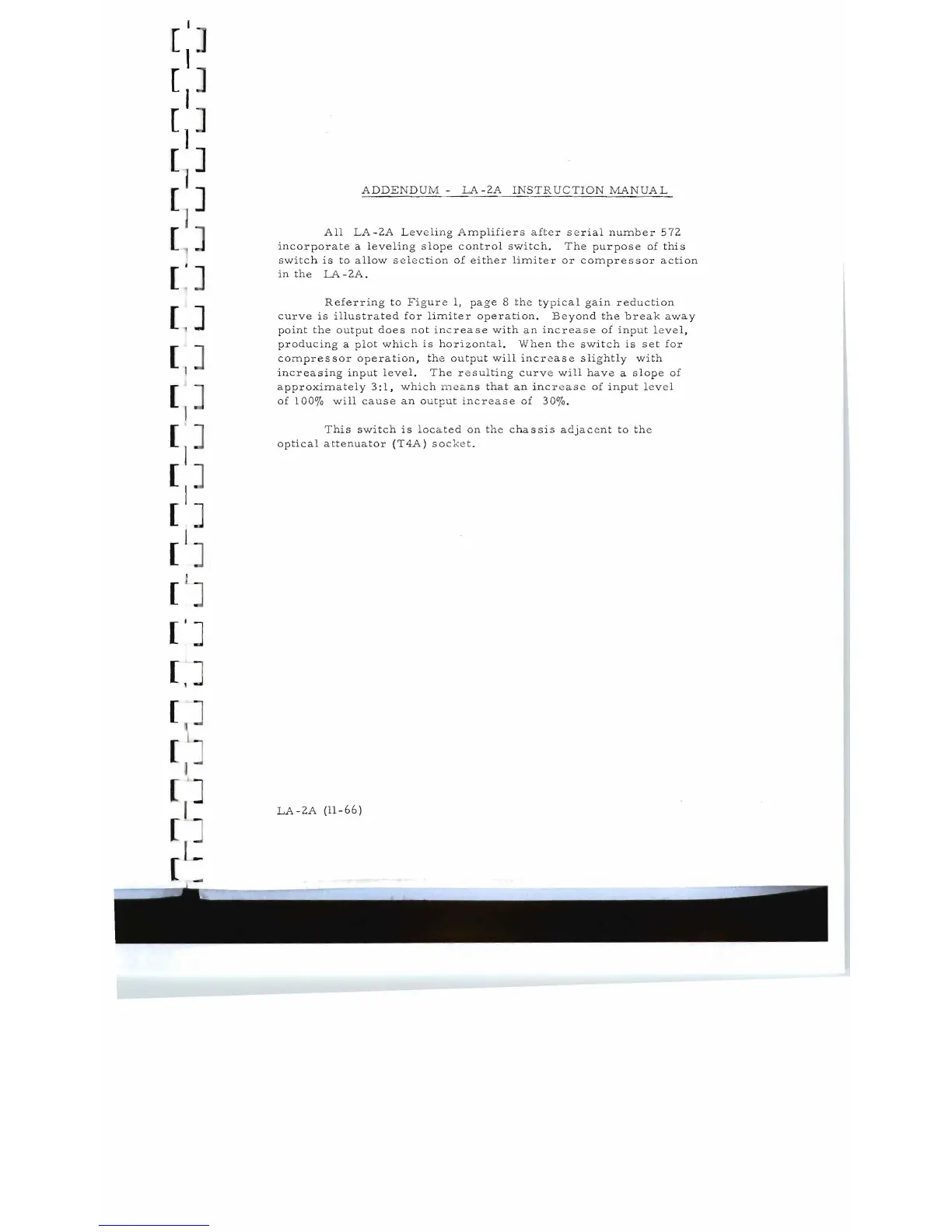 TELETRONIX LA-2A - ADDENDUM - LA-2 A INSTRUCTION MANUAL