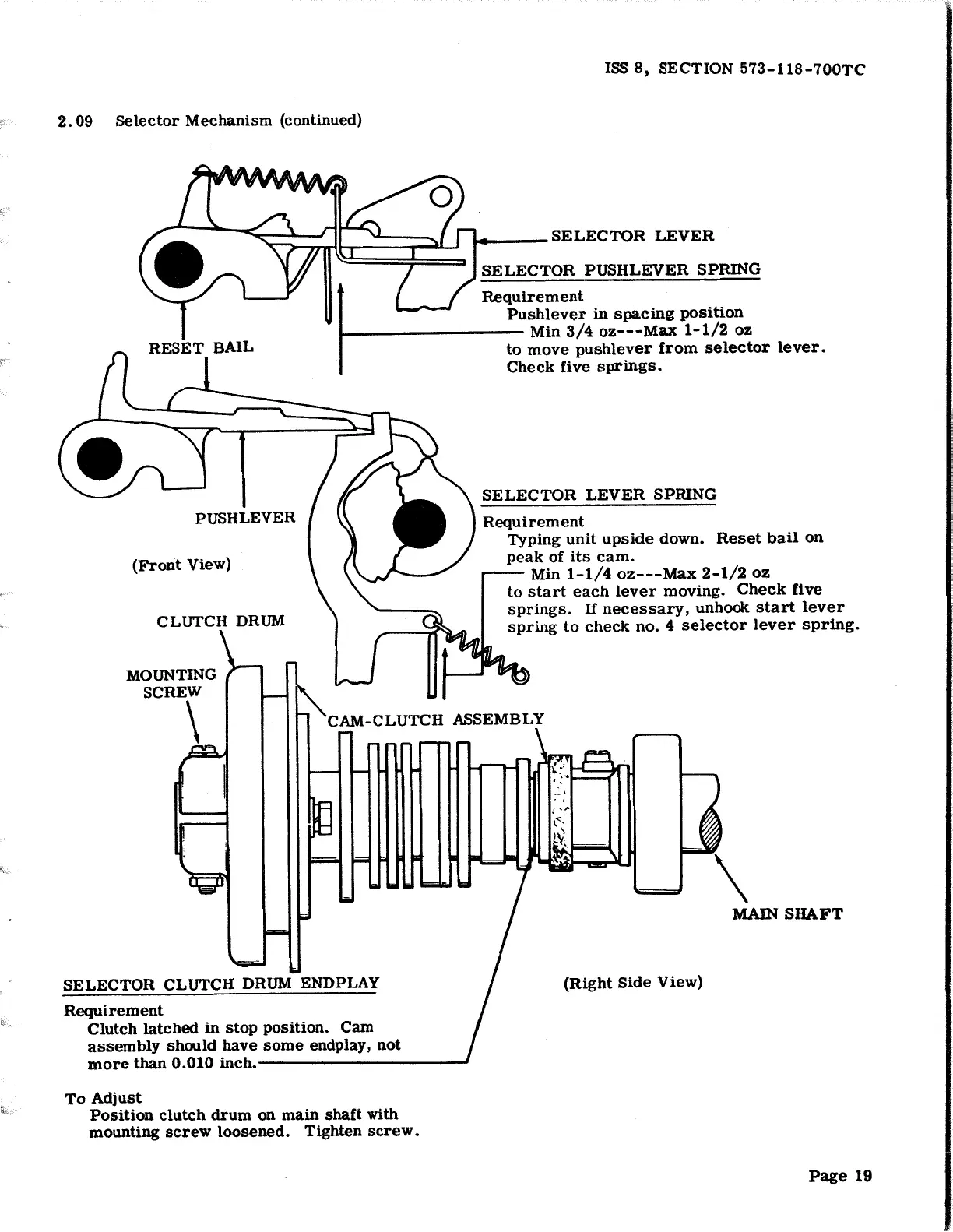 Teletype 28 - Selector Clutch Drum Endplay; Selector Lever Spring; Selector Pushlever Spring