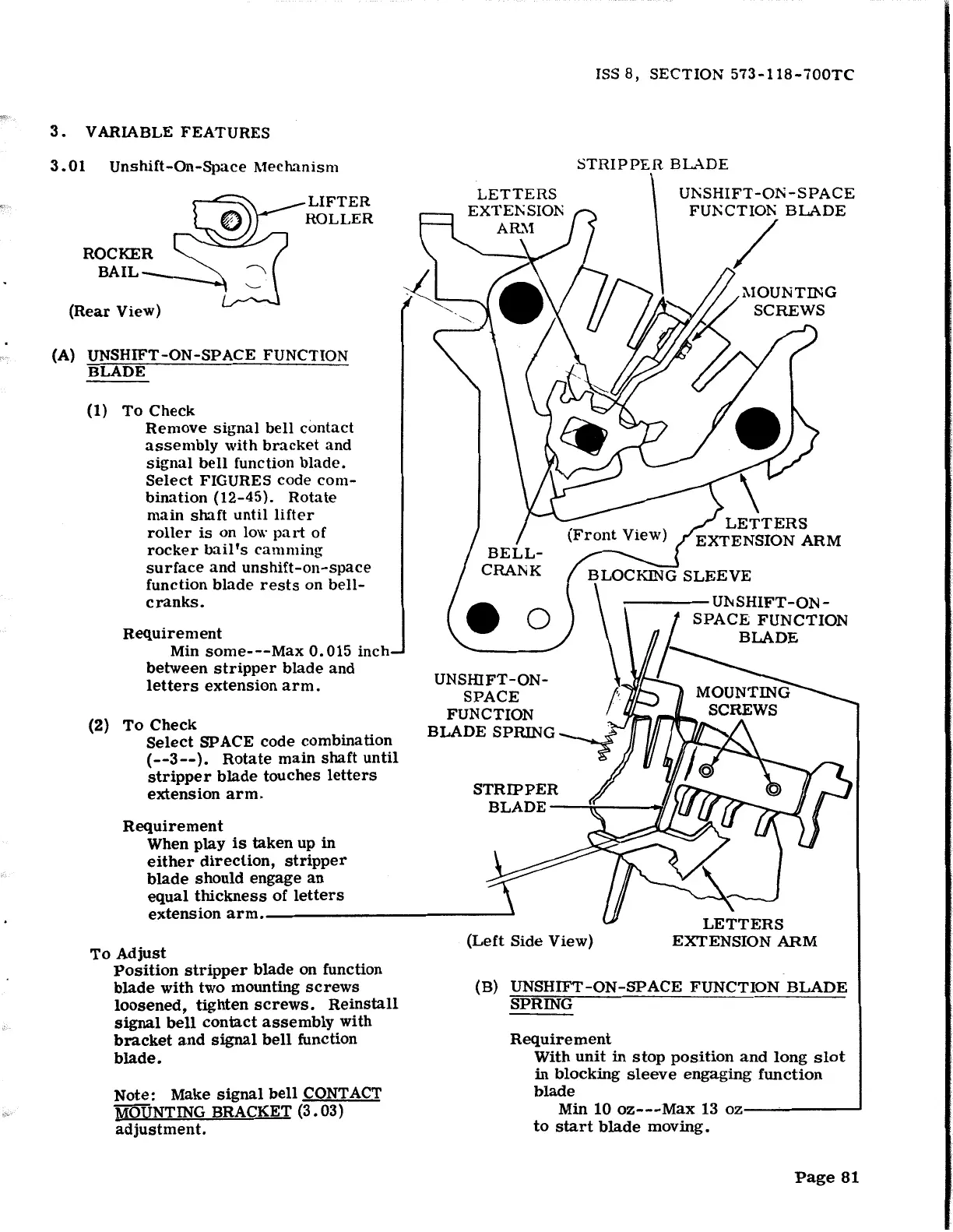Teletype 28 - 3.01 Unshift-On-Space Mechanism