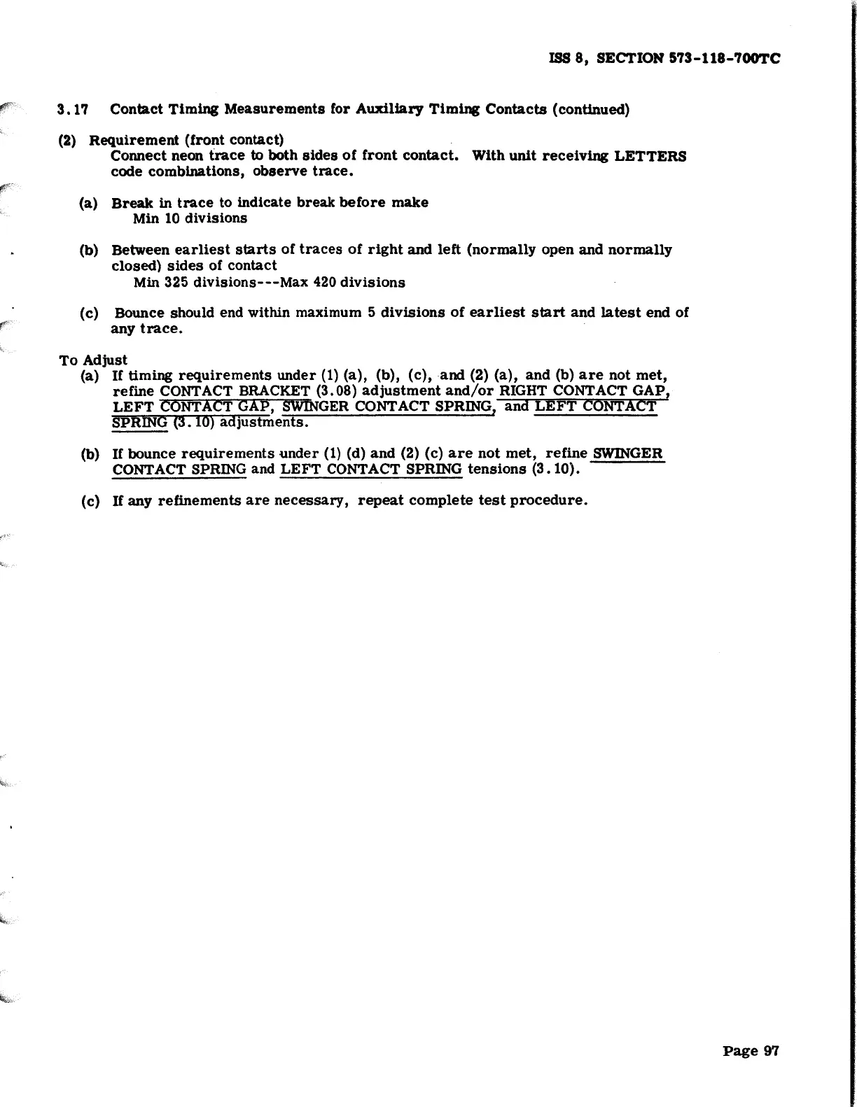 CONTACT GAP, SWINGER CONTACT SPRING,