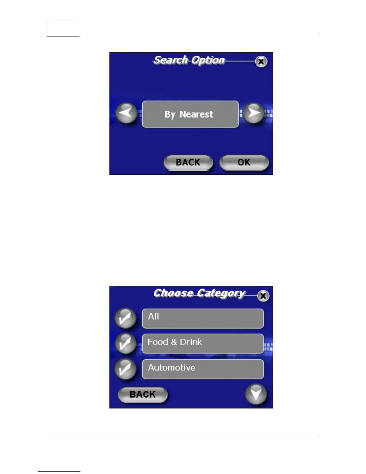 POI Search Option Screen