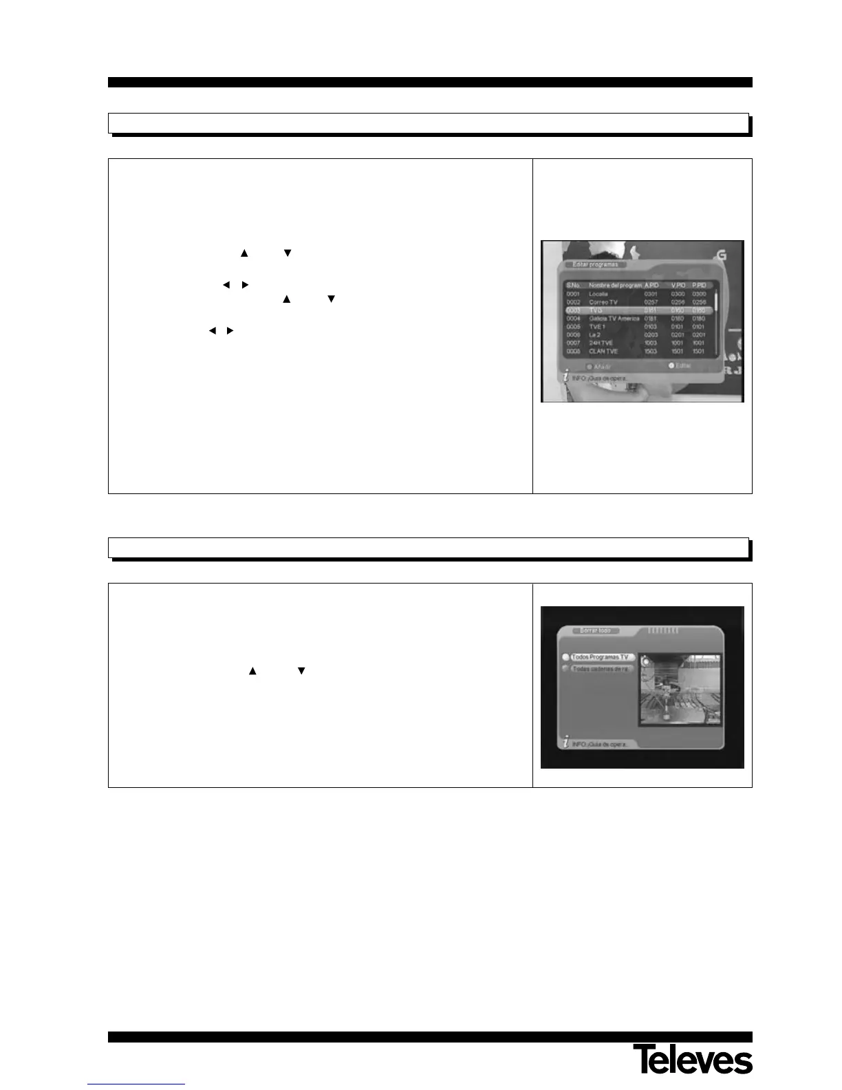 Mediante este menú puede borrar los programas de TV o de Radio.