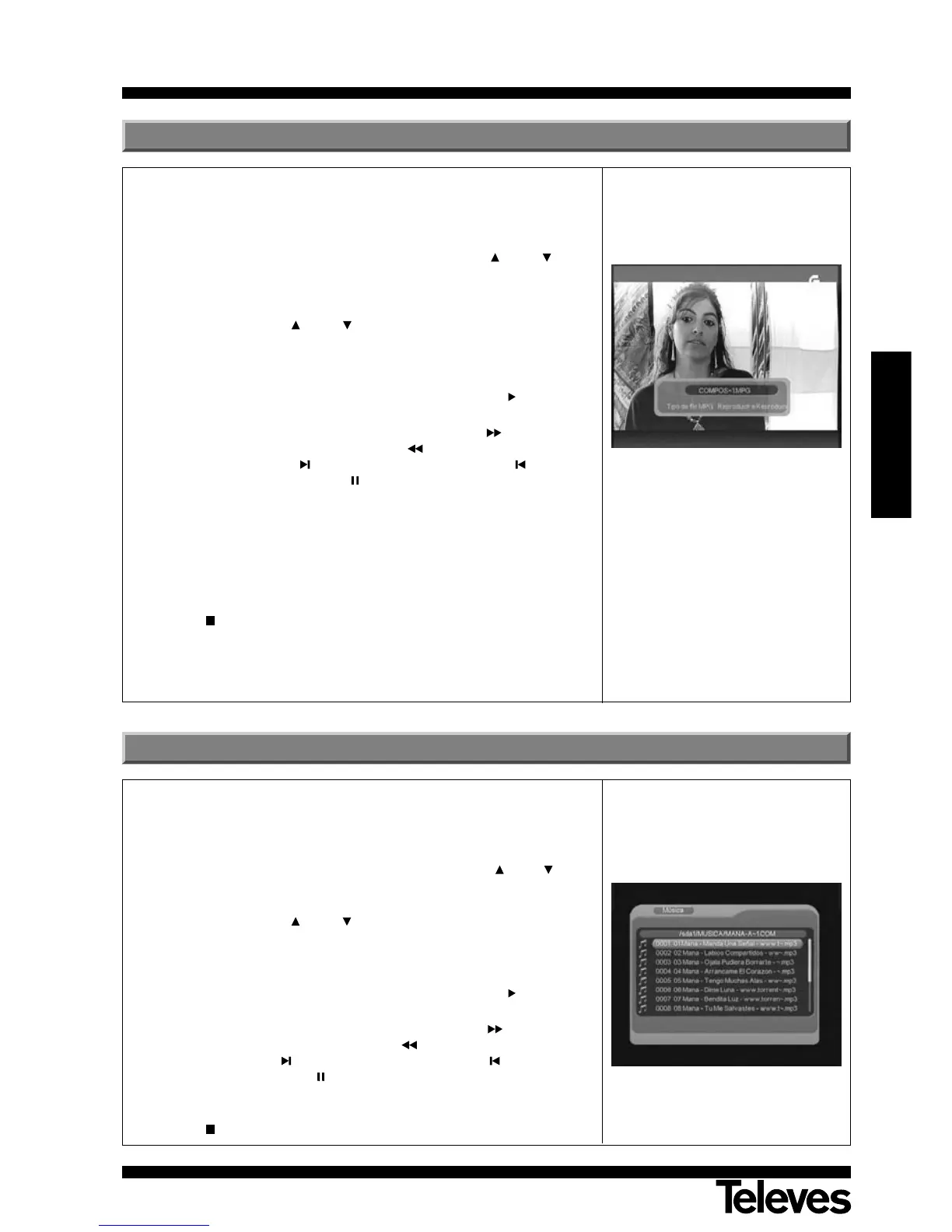 mediante las teclas CH+ / CH-. Los archivos de video deben ser