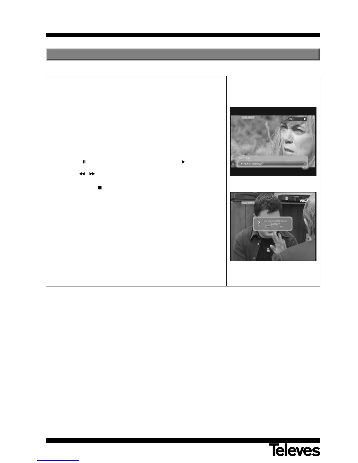 “TIMESHIFT” indication will appear on the screen. From that moment